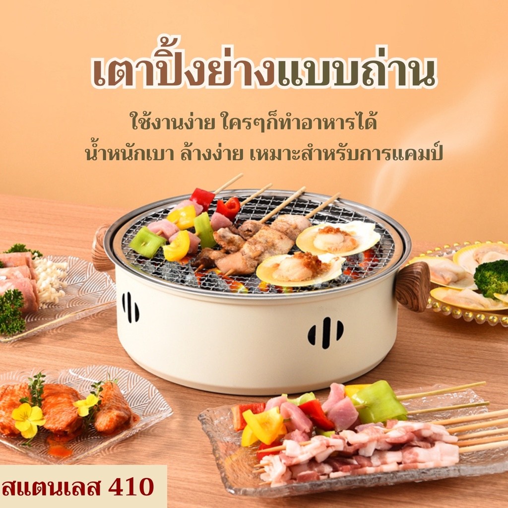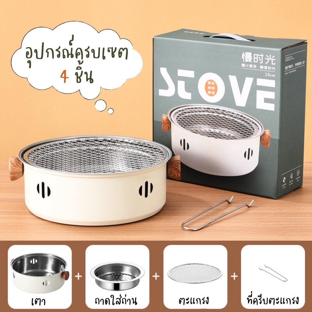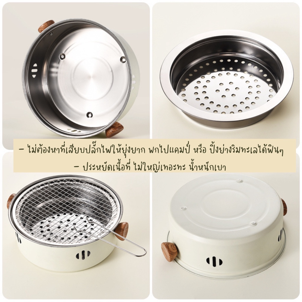 ⭐ลูกค้าใหม่ 1฿⭐เตาปิ้งย่างใส่ถ่าน เตาปิ้งย่างเกาหลี ครบเซ็ท 4 ชิ้น กระทะปิ้งย่าง เตาถ่านแบบไร้ควันในครัว