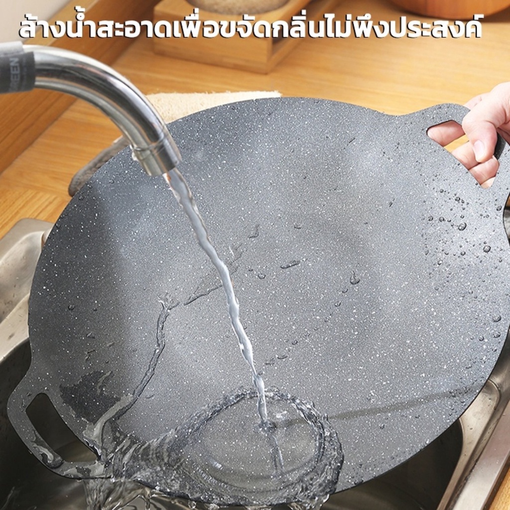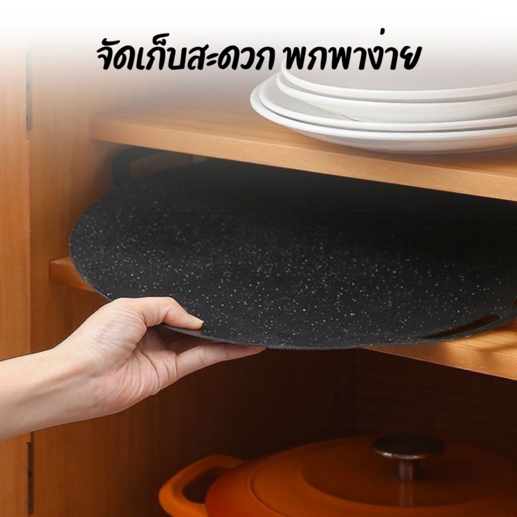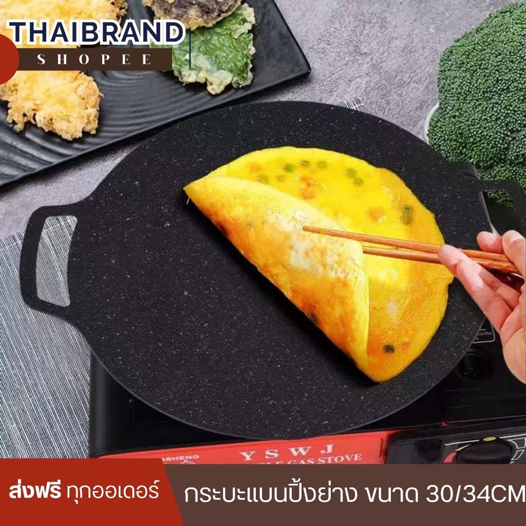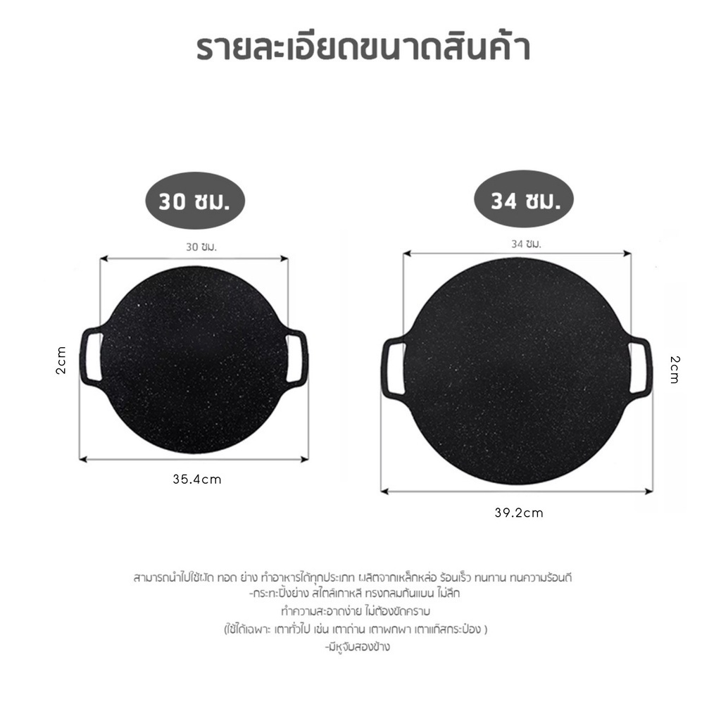 [ส่งฟรี] กระทะปิ้งย่างเกาหลี กระทะทรงแบน BBQ ปิ้งย่างบาร์บีคิว พกพาสะดวก ไม่ติดกระทะ ขนาด 30/34cm