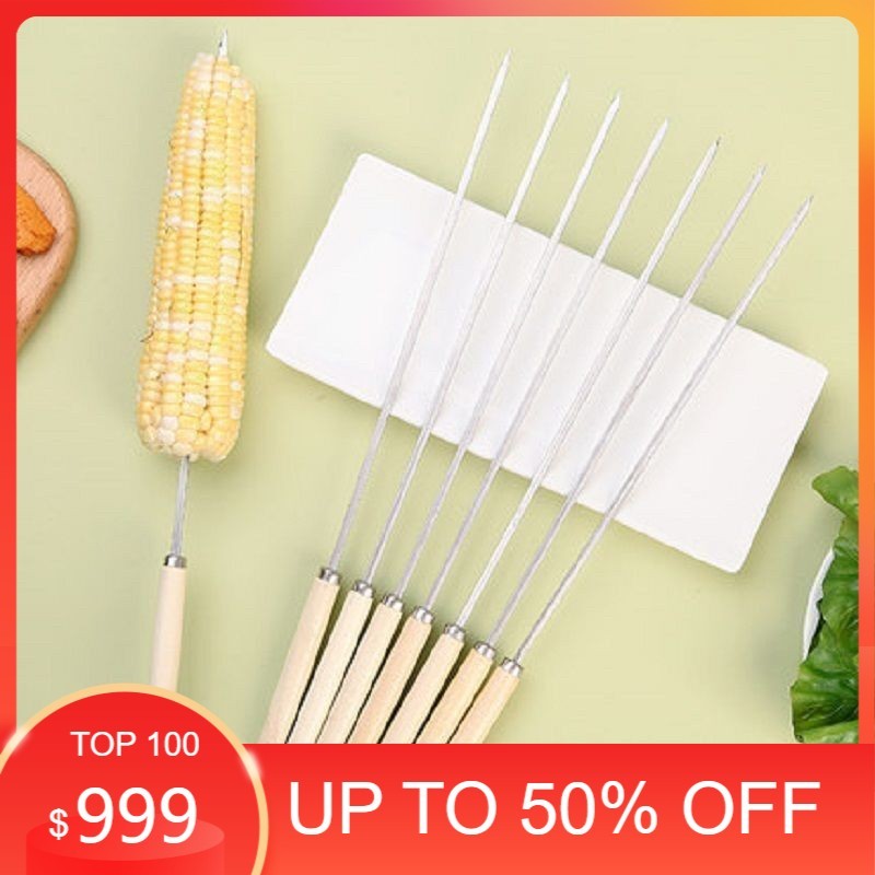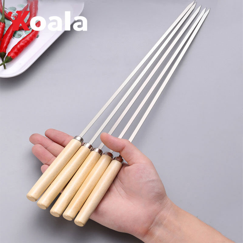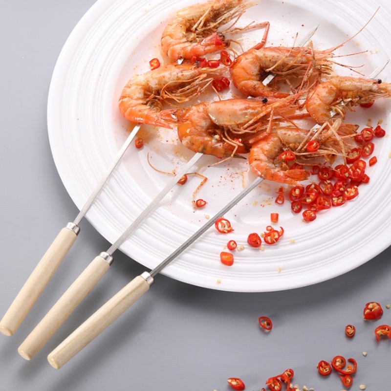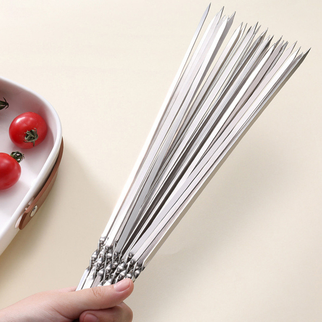 10PCS ไม้เสียบ BBQ ไม้เสียบย่างบาร์บีคิว ไม้เสียบบาร์บีคิวสแตนเลส อุปกรณ์ย่างบาร์บีคิว นำมาใช้ใหม่