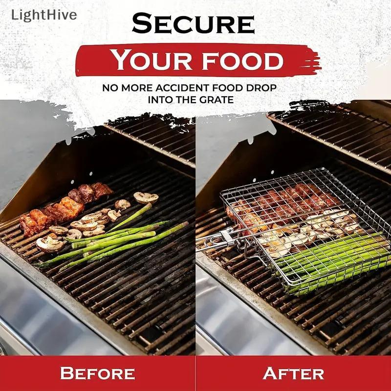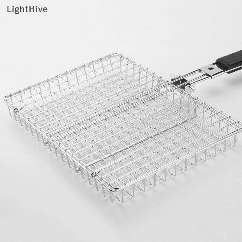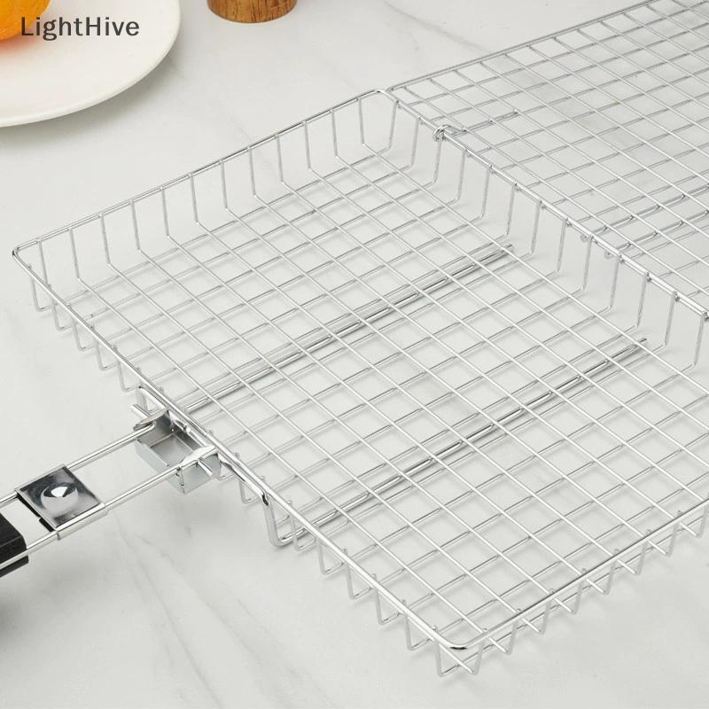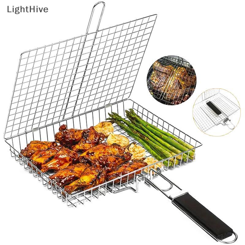 [สว่างขึ้น] พับ304สแตนเลสบาร์บีคิวตาข่ายไม่ติดย่างตะกร้าย่างตาข่ายเสื่อเนื้อผักสเต็กปิกนิกพรรคบาร์บีคิวเครื่องมือ(ไทย)