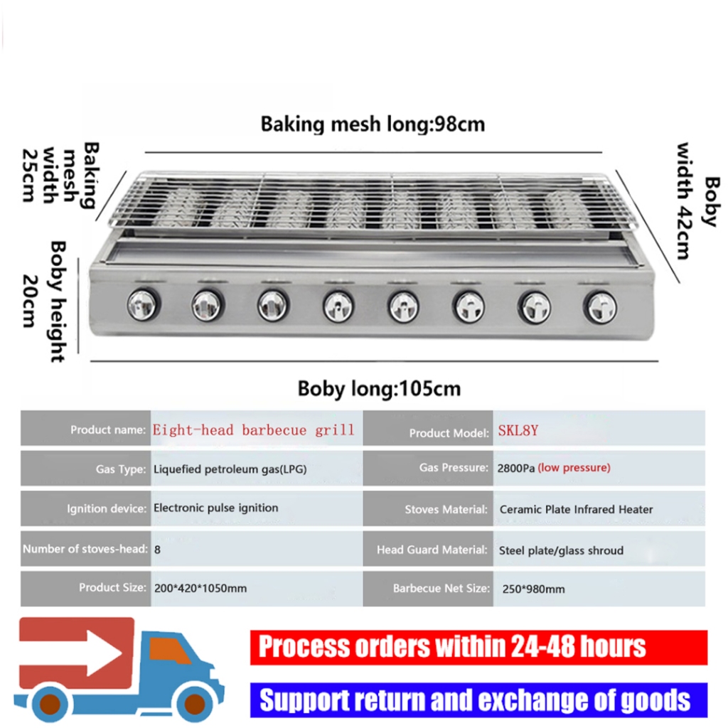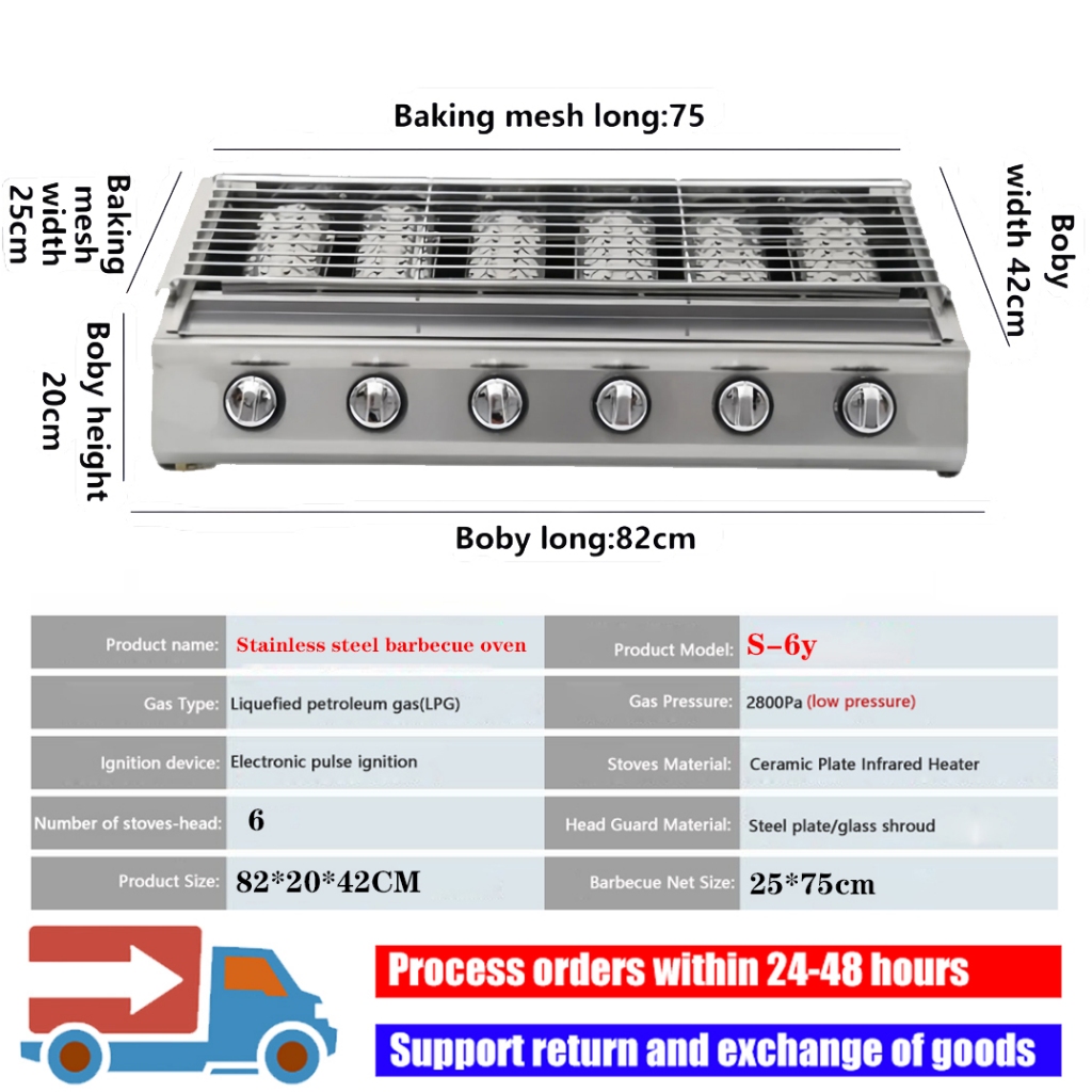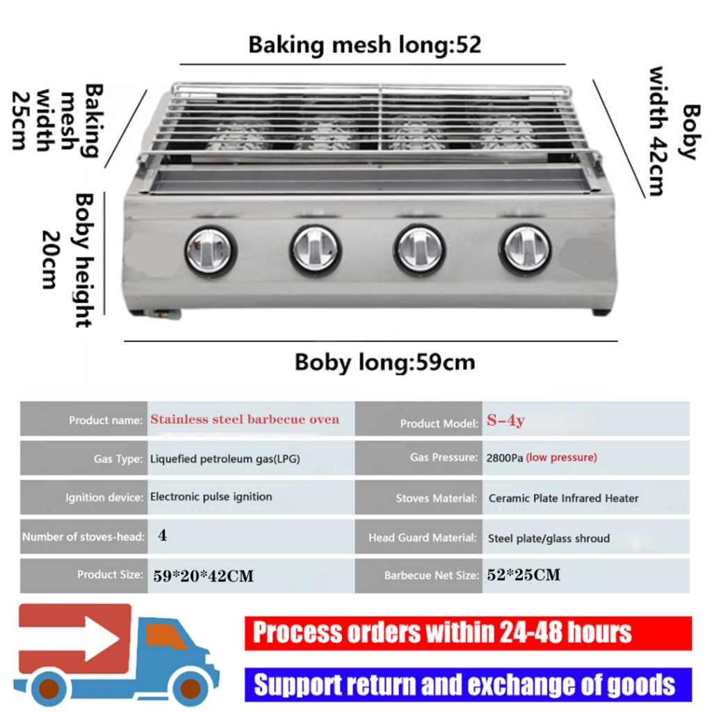 4/6/8 เตาปิ้งย่าง มัลติฟังก์ชั่น เตาย่าง สแตนเลส เตาย่างแก๊ส ใช้แก๊สไร้ควัน เตาปิ้งย่าง ครัว BBQ หัวอินฟาเรดแบบสั้น