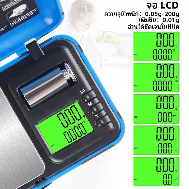 เครื่องชั่งน้ำหนักเครื่องชั่งน้ำหนักขนาดพกพา 0.001g – 200g การสอบเทียบน้ำหนักขนาดเครื่องประดับหน้าจอ LCD ขนาดใหญ่ 6 หน่ว