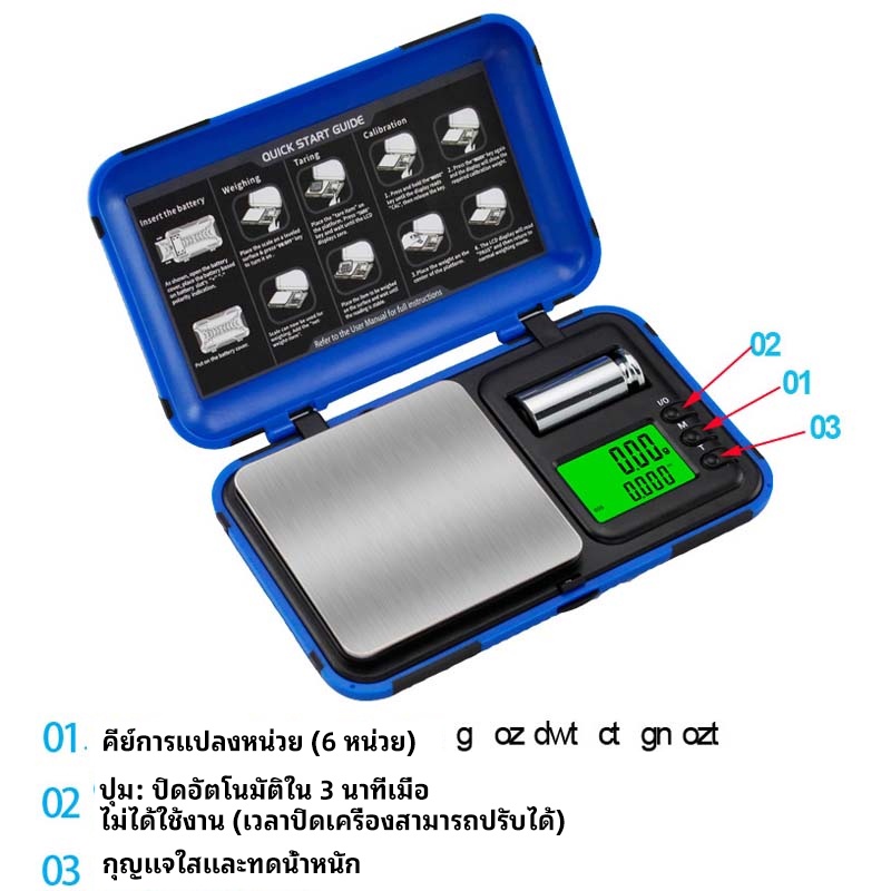 เครื่องชั่งเครื่องประดับอิเล็กทรอนิกส์แบบพกพา – เครื่องชั่งกรัมความแม่นยําสูงพร้อมฟังก์ชั่นสอบเทียบและจอแสดงผล จอแอลซีดี ใส (0.01ก–1กิโลกรัม)