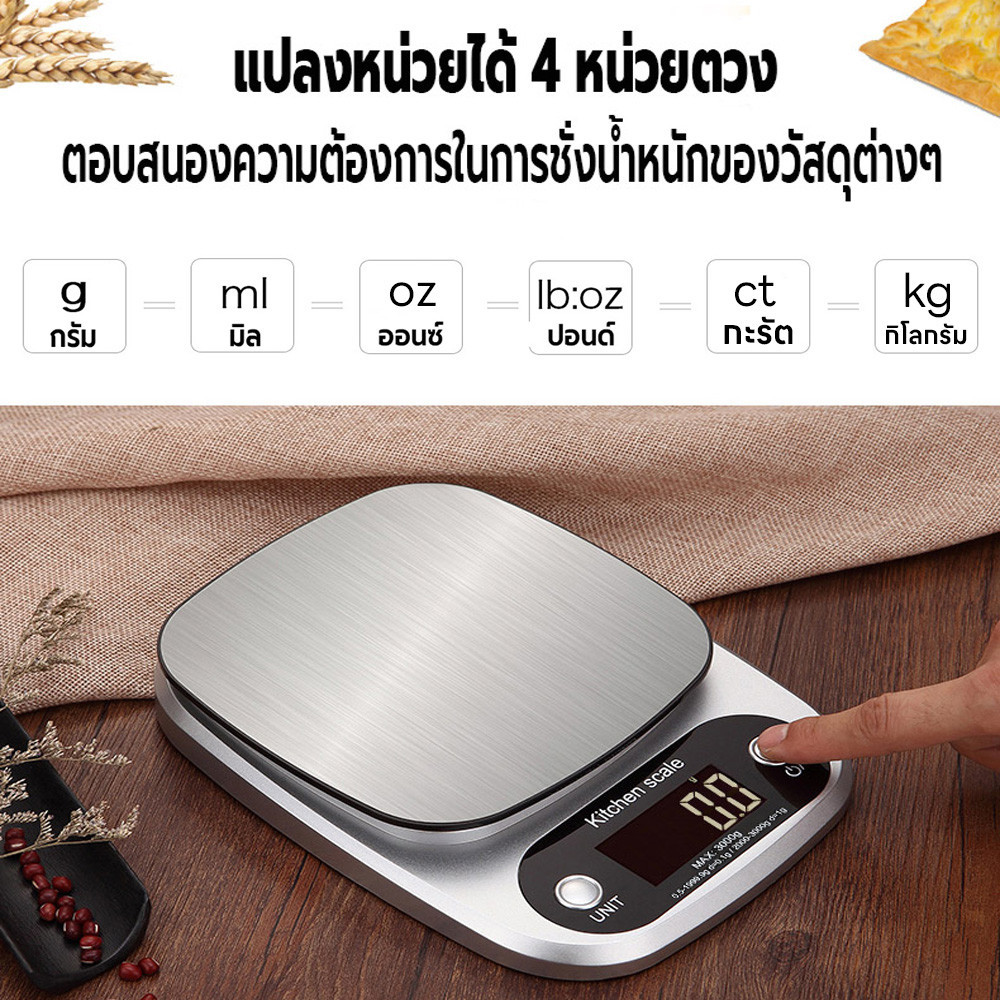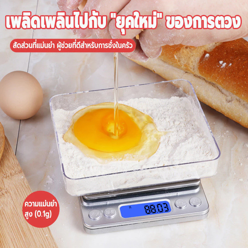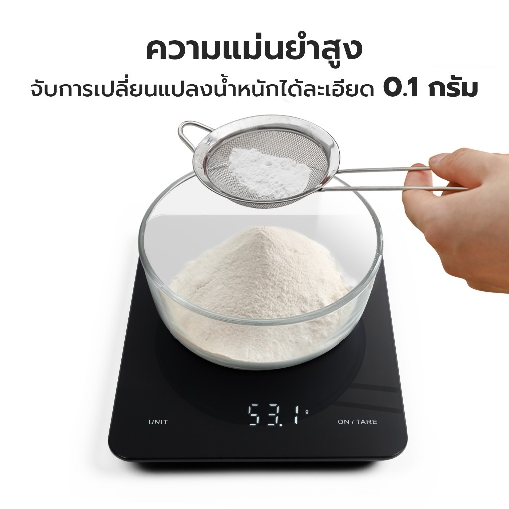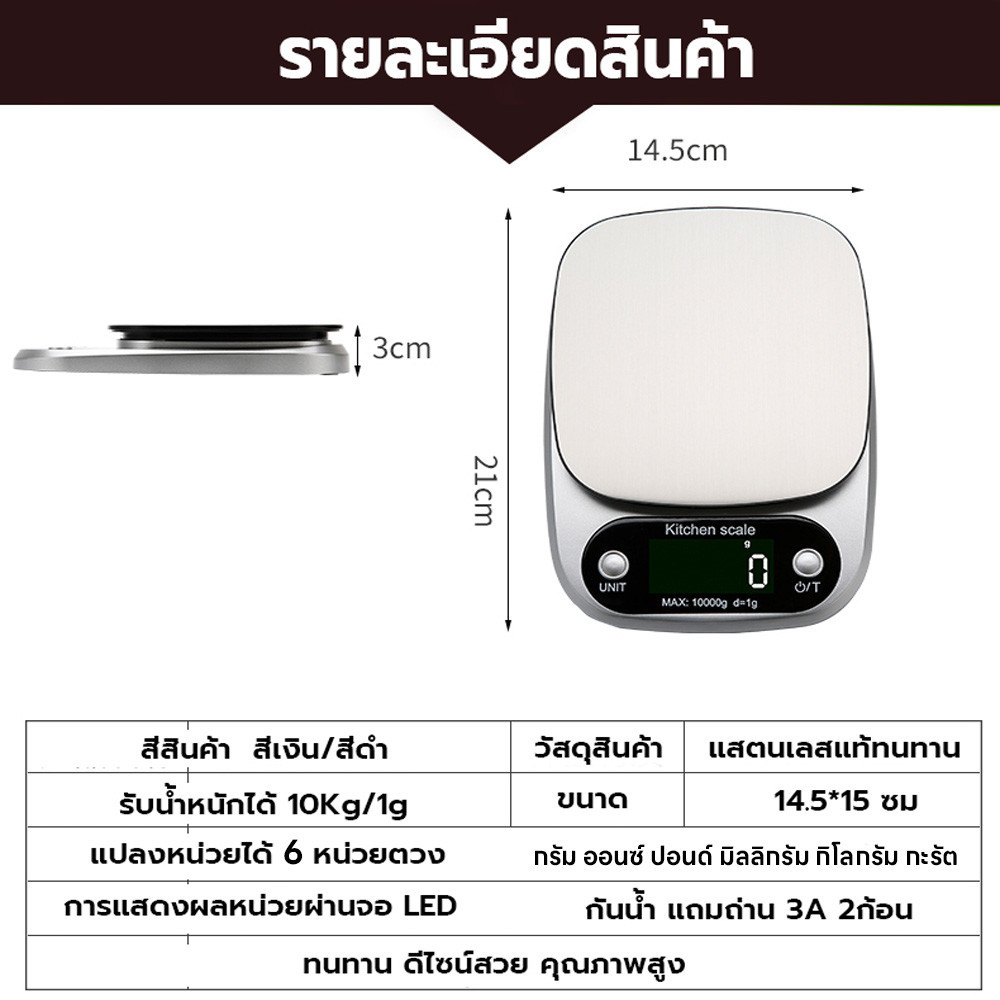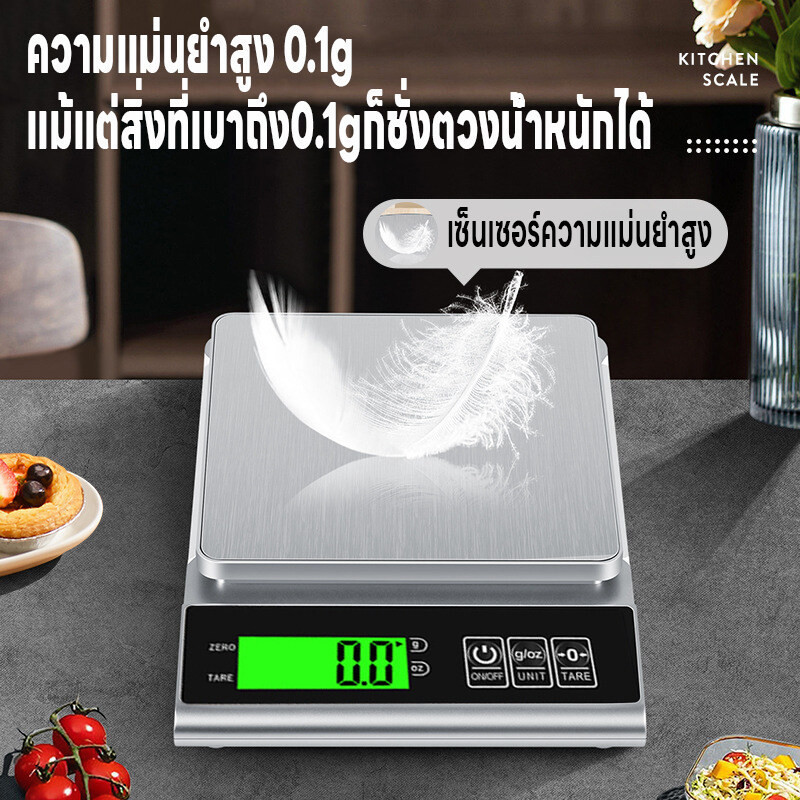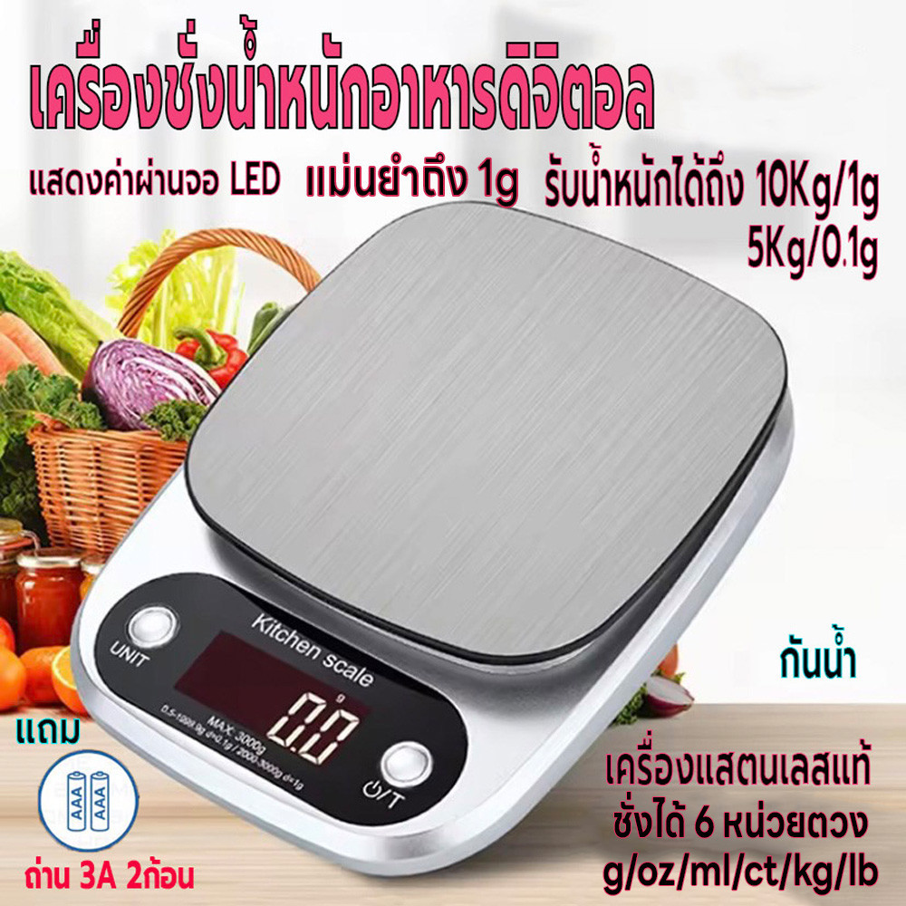 เครื่องชั่งในครัว 0.1g-3kg/1g-10kg ปรับได้2หน่วยg/oz เครื่องชั่งตวง ระบบดิจิตอล จอLED กันน้ำจับเวลาได้ แถมถ่าน3A2ก้อน