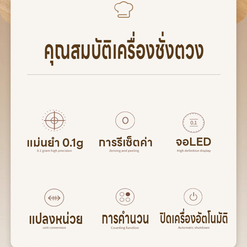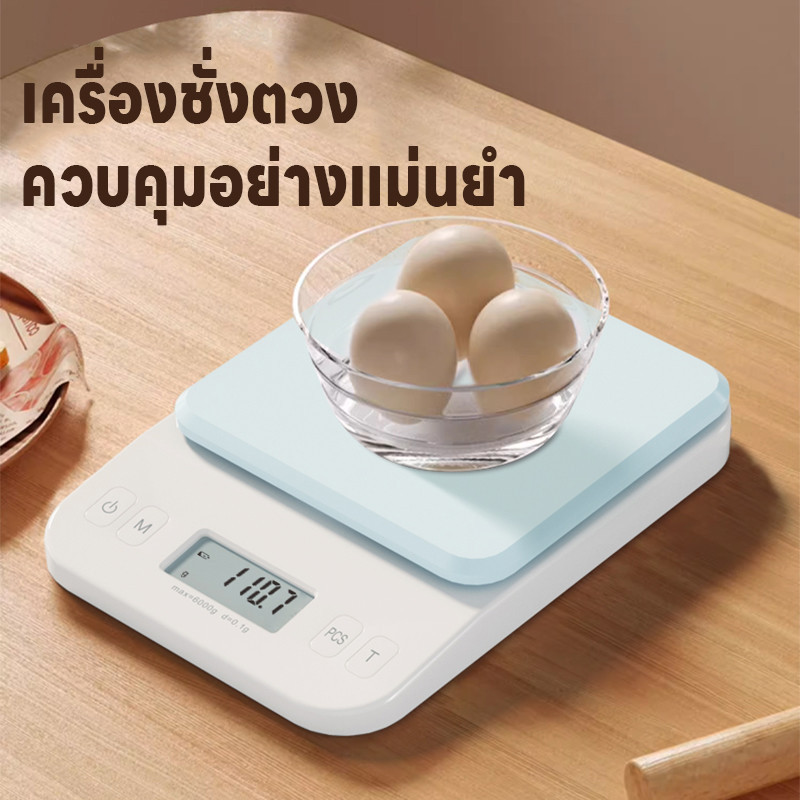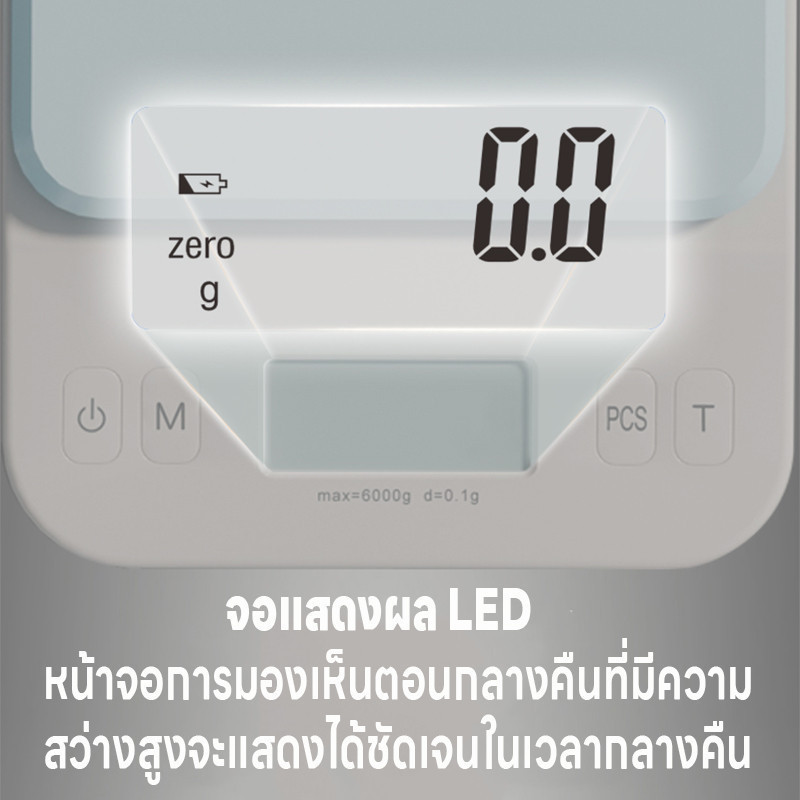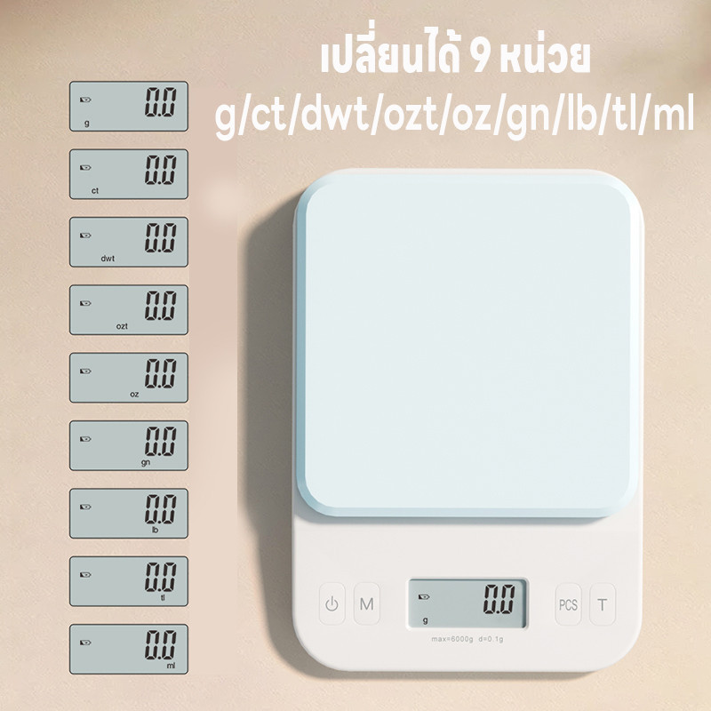 เครื่องชั่งอาหาร ที่ชั่งตวง จอLED เครื่องชั่งดิจิตอล ปรับได้9หน่วย แม่นยำ0.1g ชั่งได้0.1g/6kg นับชิ้นได้ แถมถ่านAAA2ก้อน