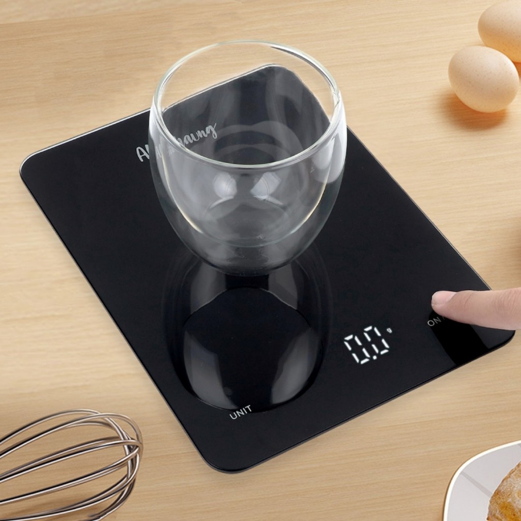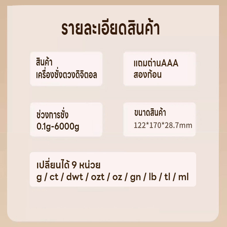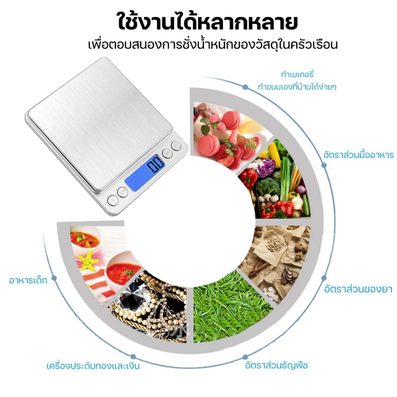 เครื่องชั่งน้ำหนักดิจิตอล ใช้ในครัววัตถุดิบ จิวเวลรี่ รับน้ำหนักได้5kg/0.1g 10kg/1g หน้าจอLED แถมถ่าน กันน้ำ มี6หน่วยตวง