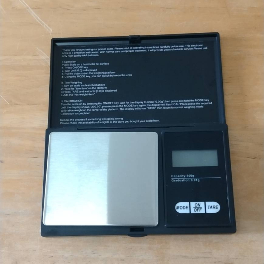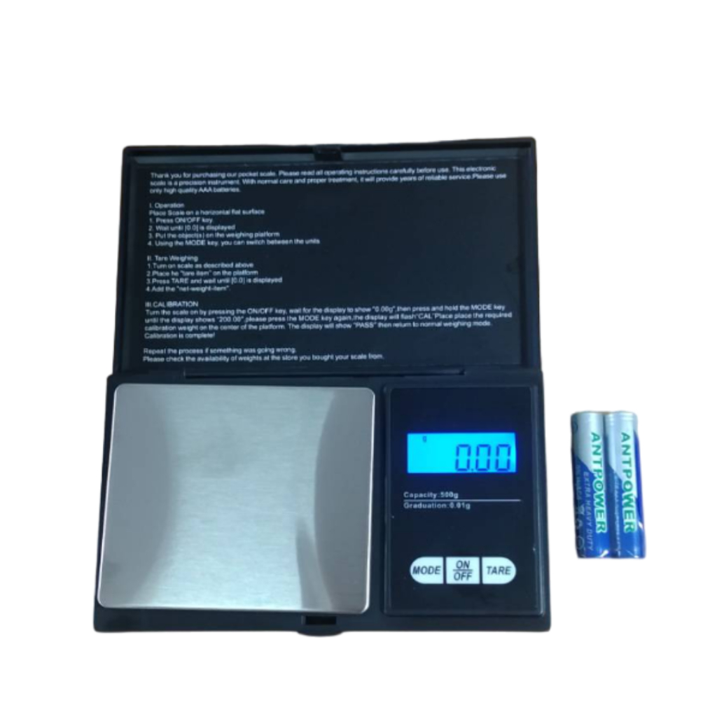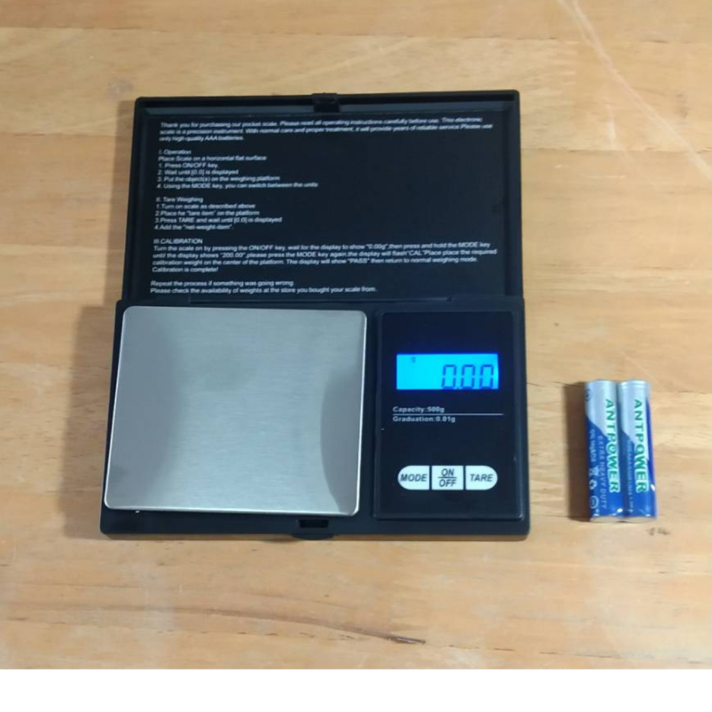 เครื่องชั่งน้ำหนักดิจิตอลพกพา0.01-500กรัม ทศนิยม2ตำแหน่ง ถ่านAAA2ก้อน(แถมในชุด)ขนาด11×7ซม.พกพาสะดวก