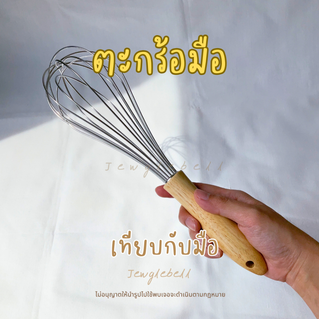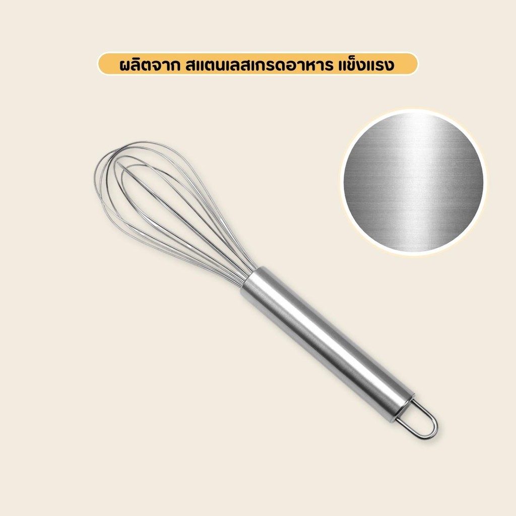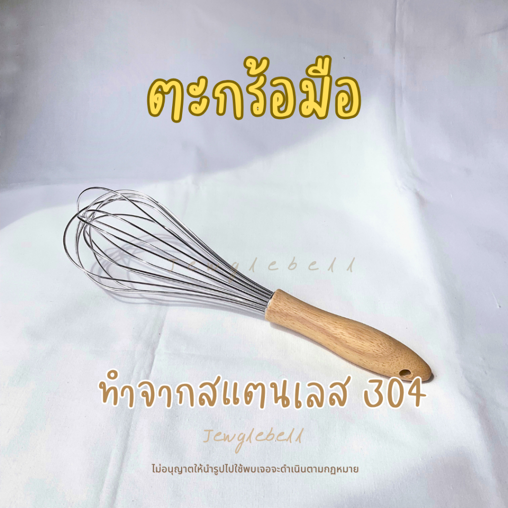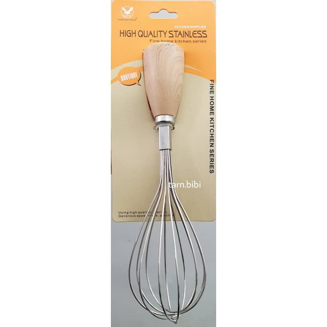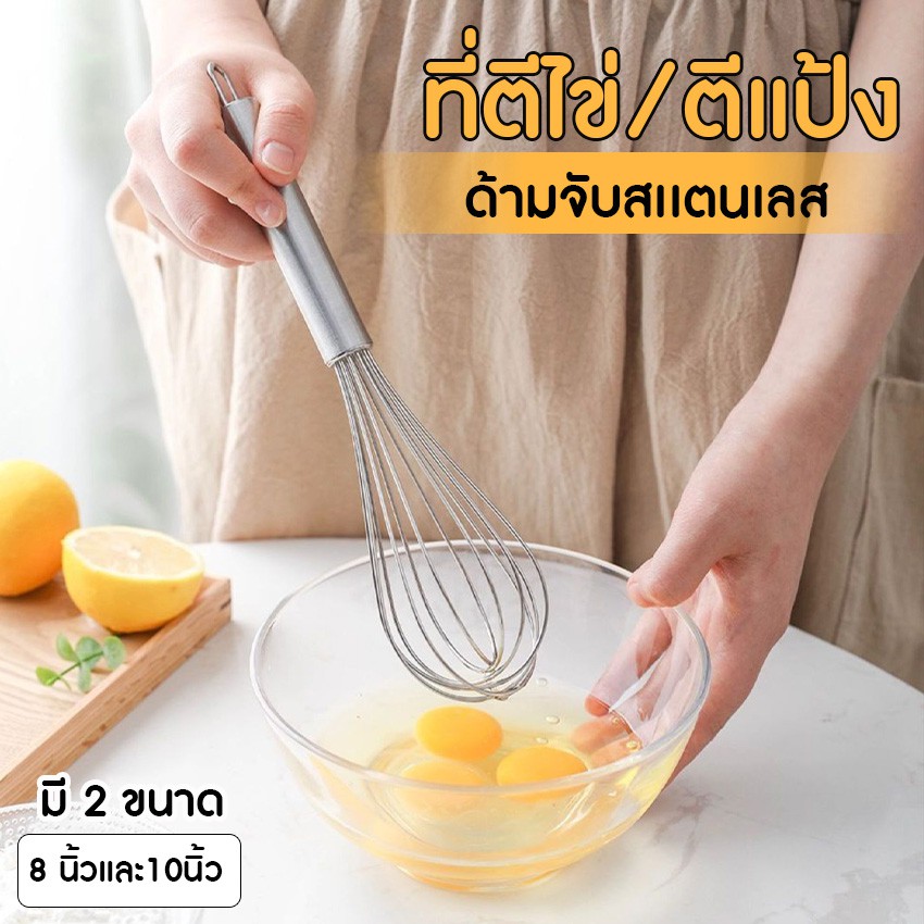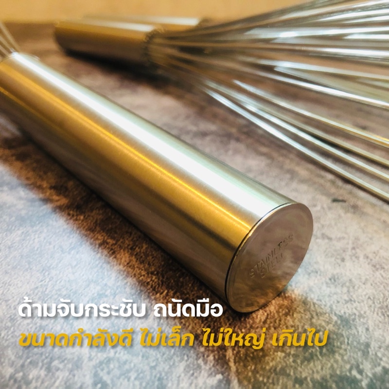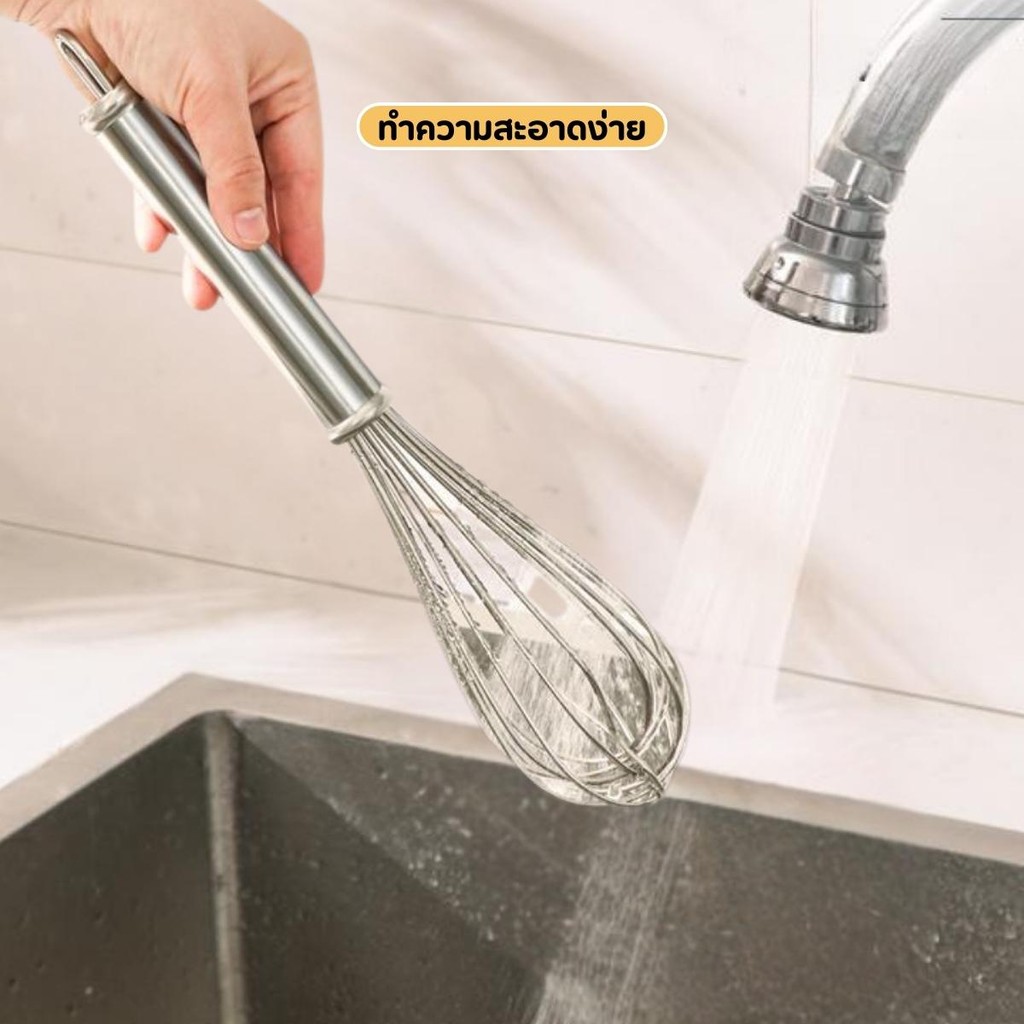 พร้อมส่ง ? ที่ตีไข่ ตะกร้อมือสแตนเลส ตะกร้อตีไข่ ด้ามไม้ 12 นิ้ว ลวด 8 เส้น ทำจากสแตนเลส 304 แข็งแรง