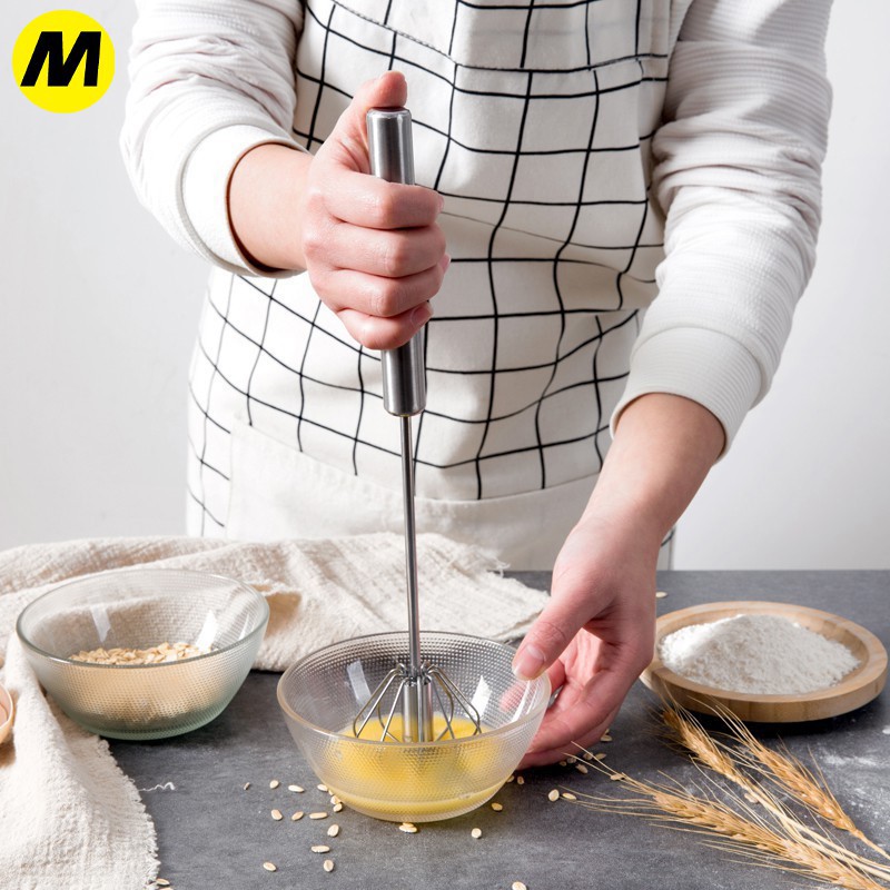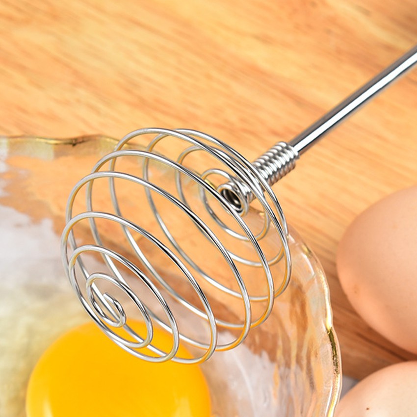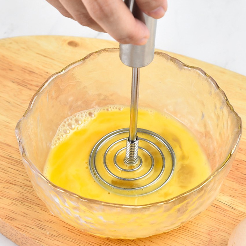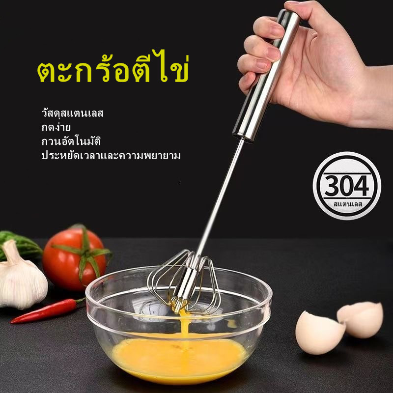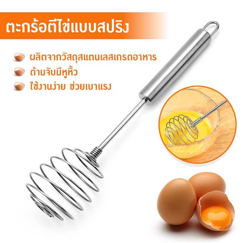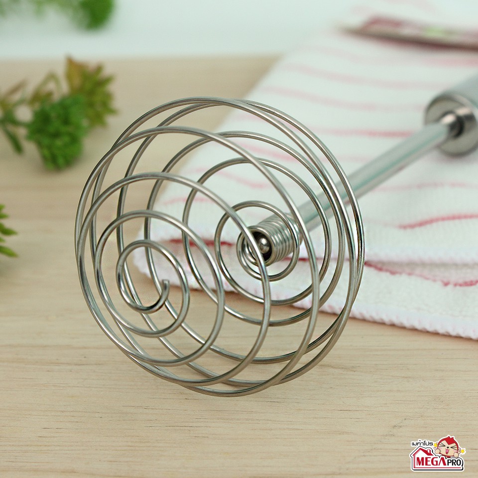 ตะกร้อตีไข่ ที่ตีไข่สแตนเลส ที่ตีฟองนม ที่ตีฟองกึ่งอัตโนมัติแบบมือกด แบบสปริง อุปกรณ์ครัว