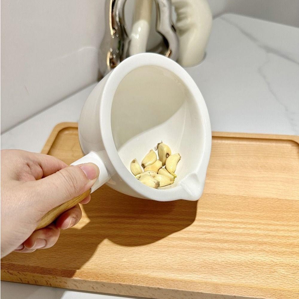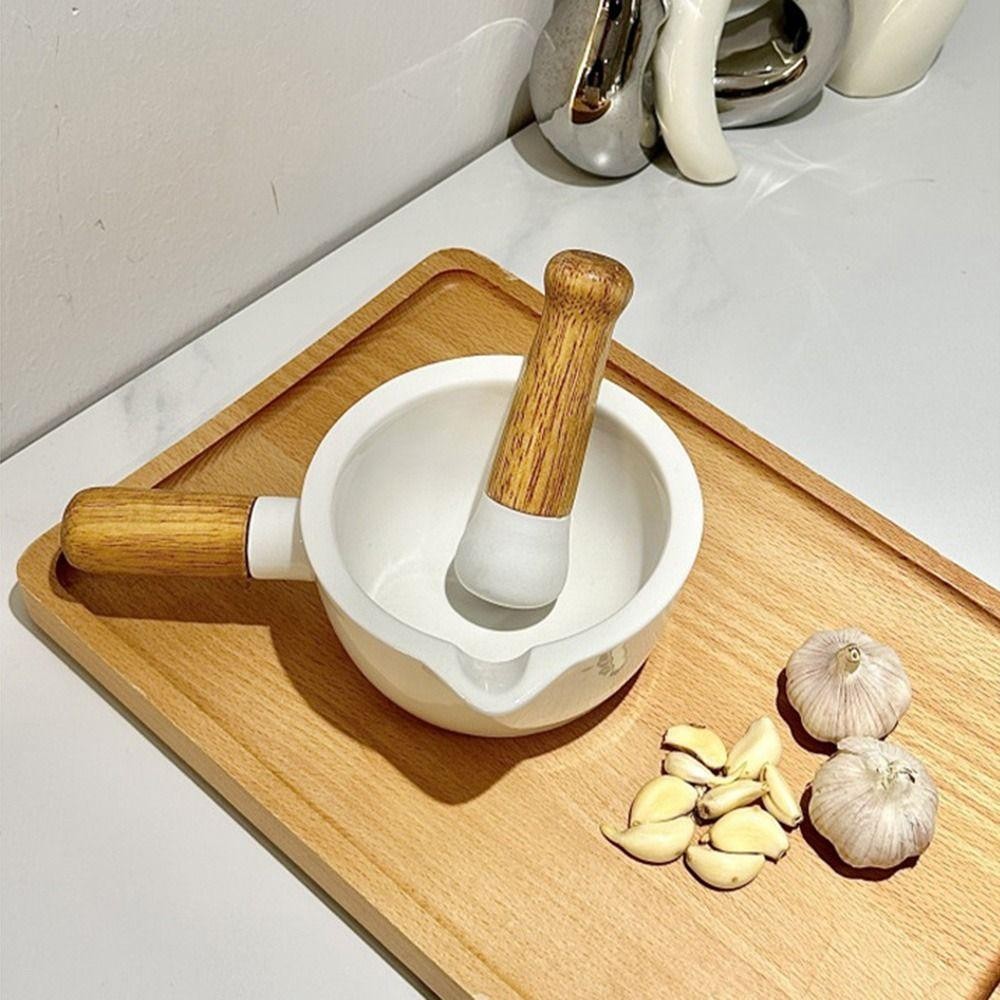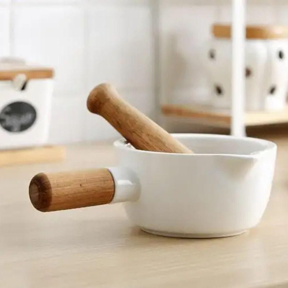 ครกผสมเซรามิกสีงาช้างพร้อมสาก, โถบดมือถือแบบด้ามจับถนัดมือด้วยมือ, บดที่มีประสิทธิภาพอเนกประสงค์ที่ทนทานพร้อมด้ามไม้ชามบดเครื่องปั้นดินเผาเครื่องเทศ