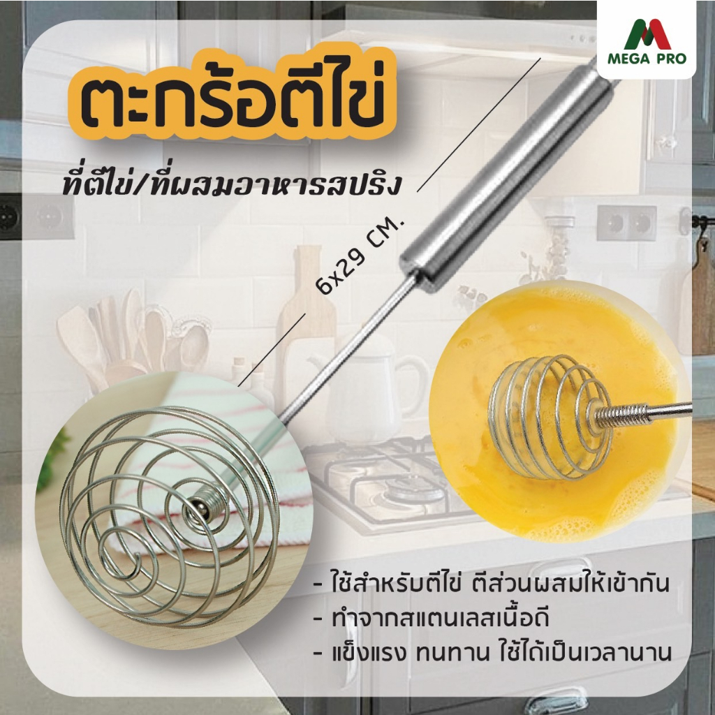 Megapro – ตะกร้อไข่ แสตนเลสสปริง ตะกร้อตีไข่ ตะกร้อมือ ที่ตีไข่ตะกร้อผสมอาหาร ขนาด 6cm