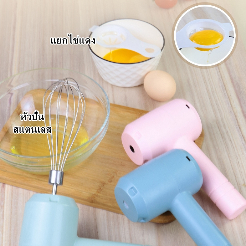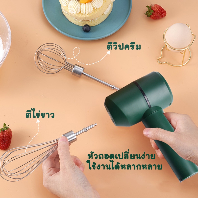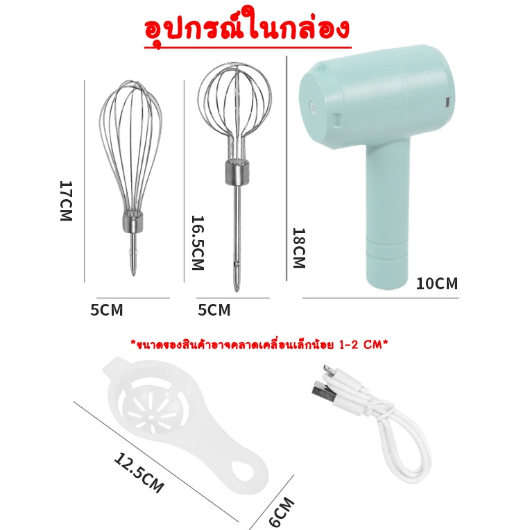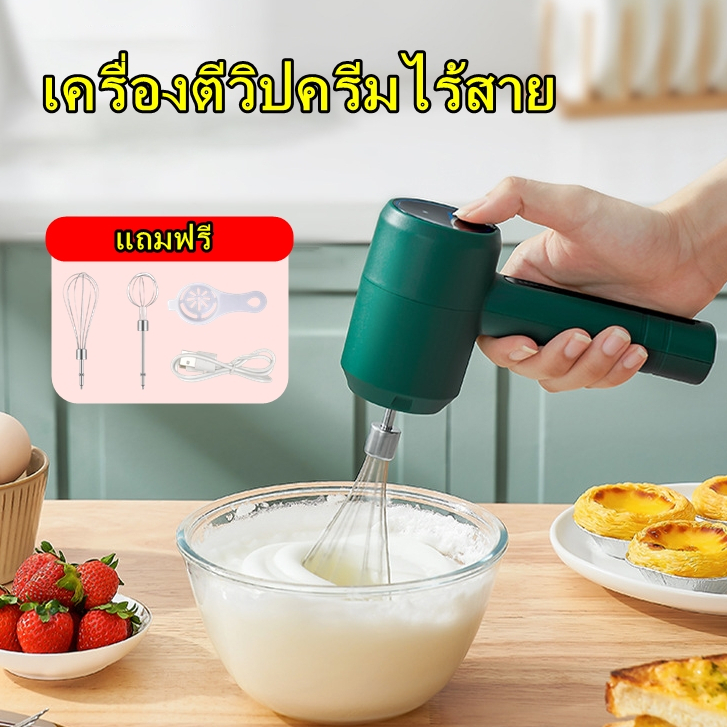 OKUMI_SHOP เครื่องตีวิปครีม ไฟฟ้า แบบไร้สาย USB เครื่องตีไข่ วิปครีม ผสมอาหาร (1ชุด)