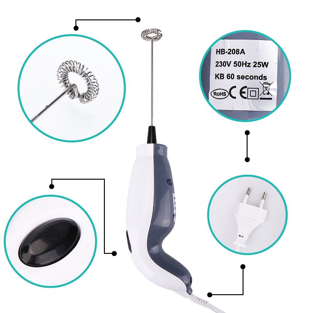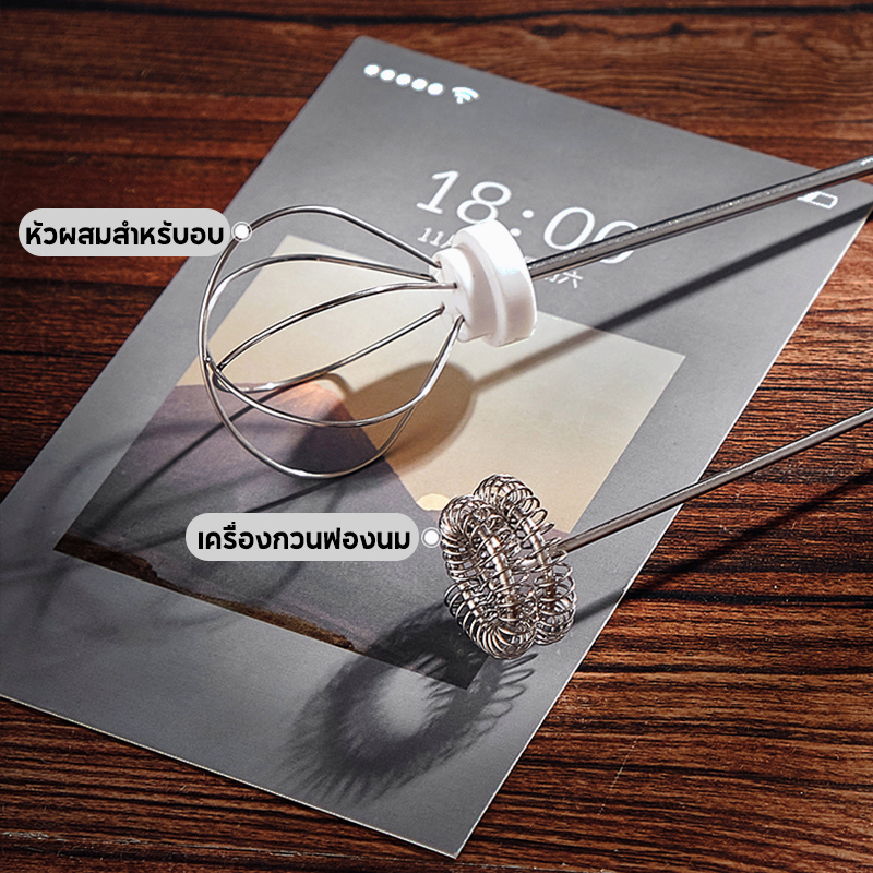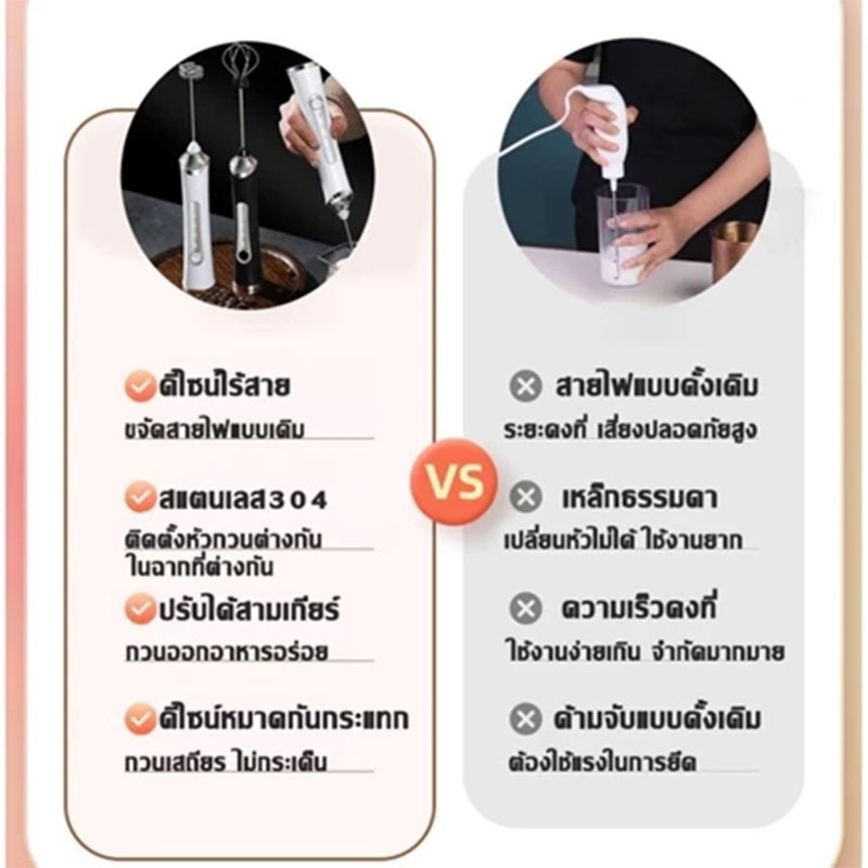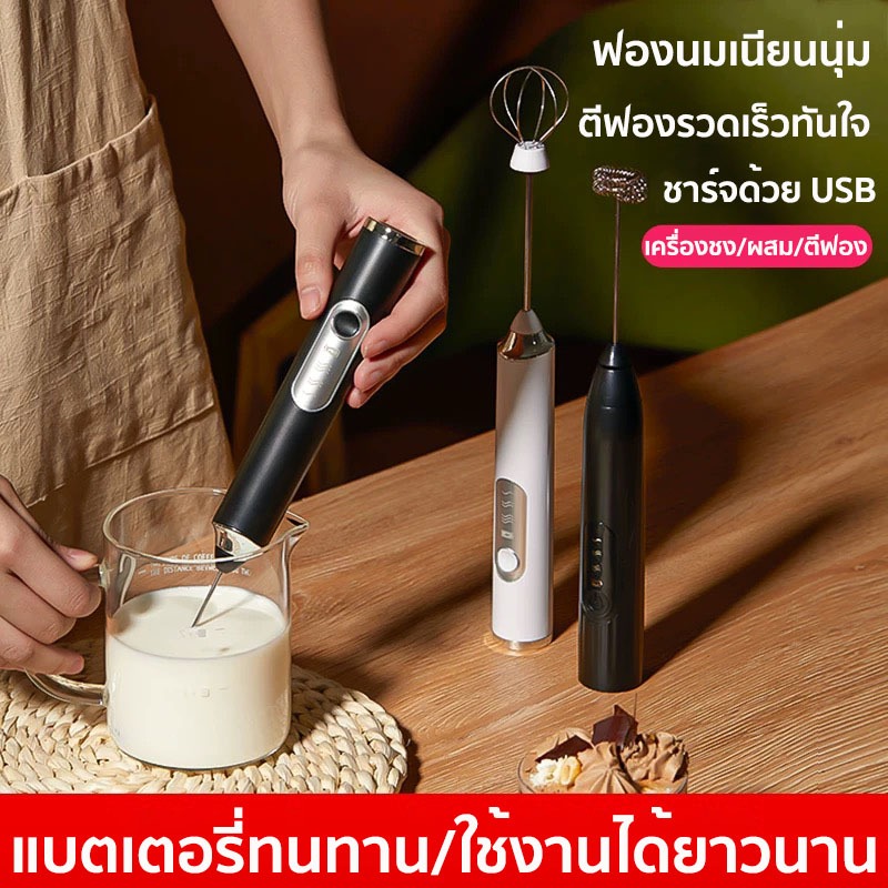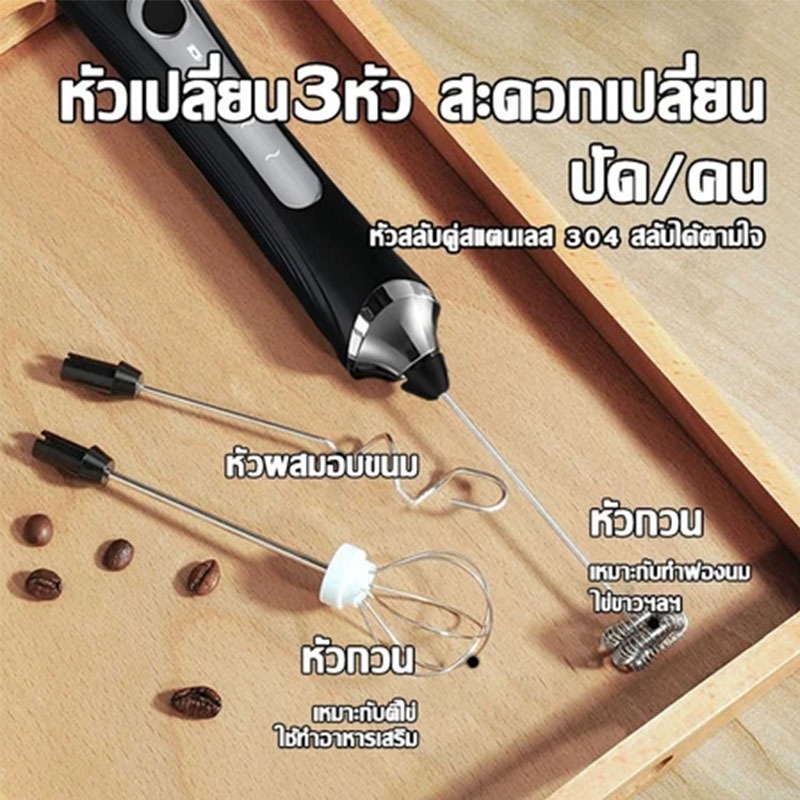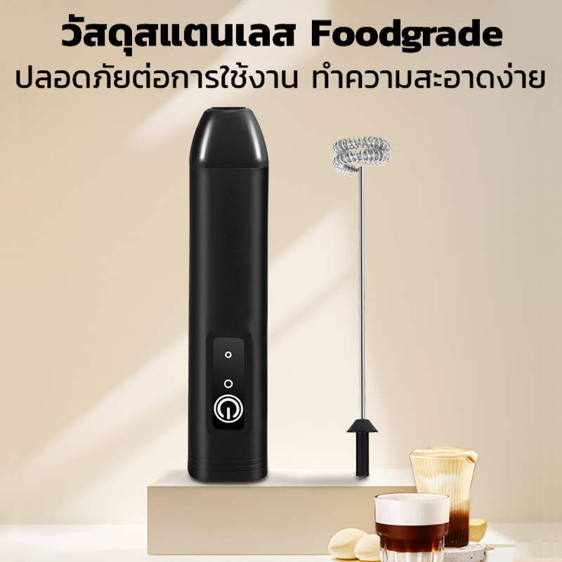 เครื่องตีฟองนม ที่ตีไข่ เครื่องตีฟองนมไฟฟ้า สแตนเลส304ไม่กระเด็น เครื่องตีไข่