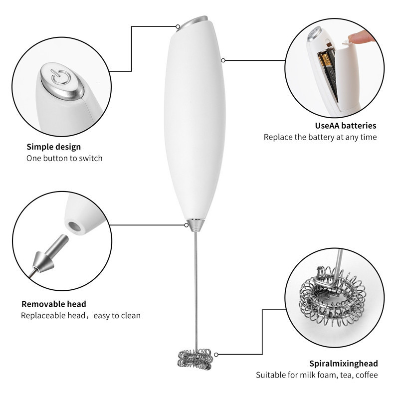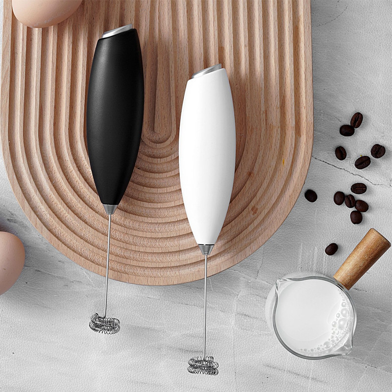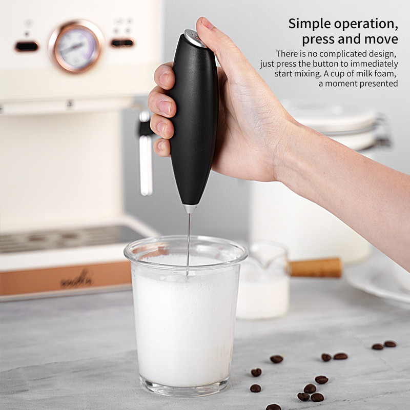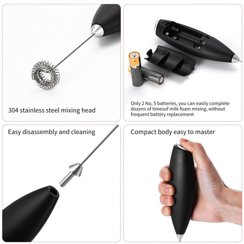เครื่องตีฟองนมไฟฟ้า สีดำ สีขาว ที่ตีฟองนม รุ่นใช้ถ่าน AA 2 ก้อน (ไม่รวมถ่าน) อุปกรณ์ชงกาแฟ