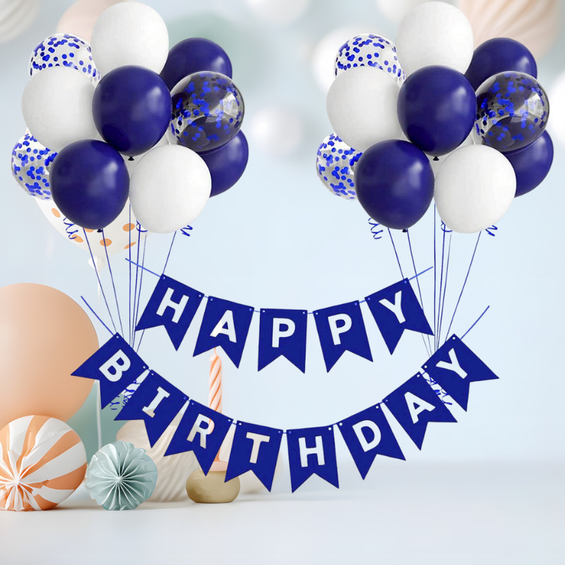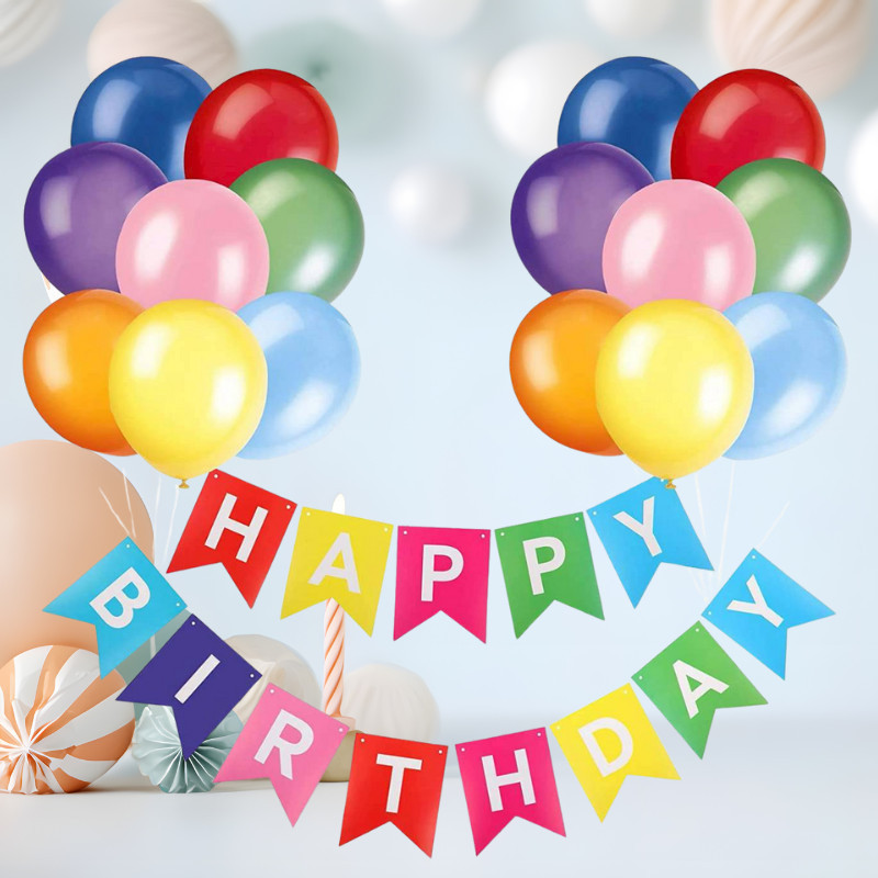 (ร้านไทย มีใบกำกับภาษี) เซ็ตธงวันเกิดพร้อมลูกโป่งสีเข้าเซ็ต เซ็ตประหยัด ราคาถูกมาก (SP)