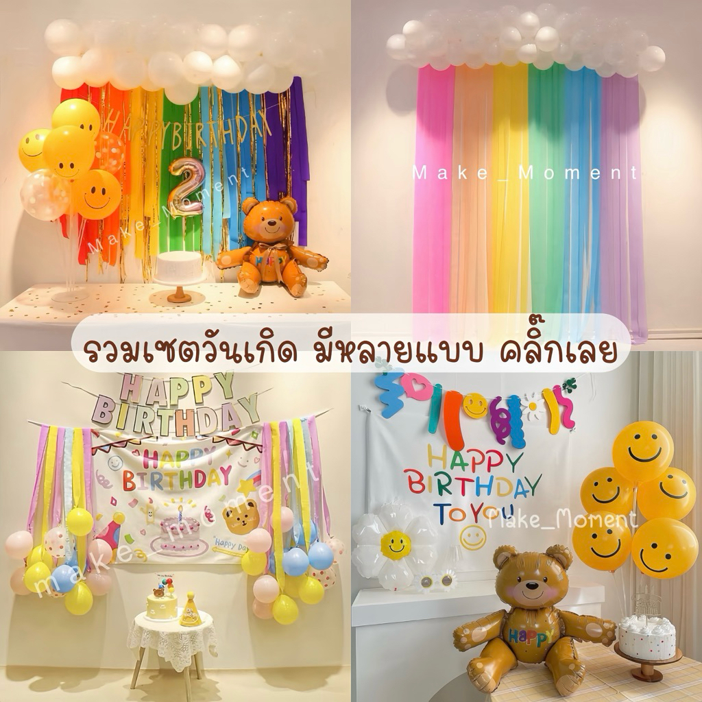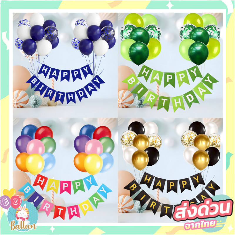 (ร้านไทย ?? ส่งไว) เซ็ตตกแต่งวันเกิด ตัวอักษร Happy birthday ลูกโป่งวันเกิด (ฟรี!ที่สูบลมทุกชุด) พร็อพยกชุด