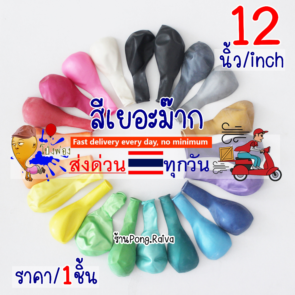 ?ลูกโป่งยางสีด้าน20 / 50 /100pcs 10 นิ้ว แบ่งขาย สีชัด หนา เหนียว พร้อมส่งในไทย
