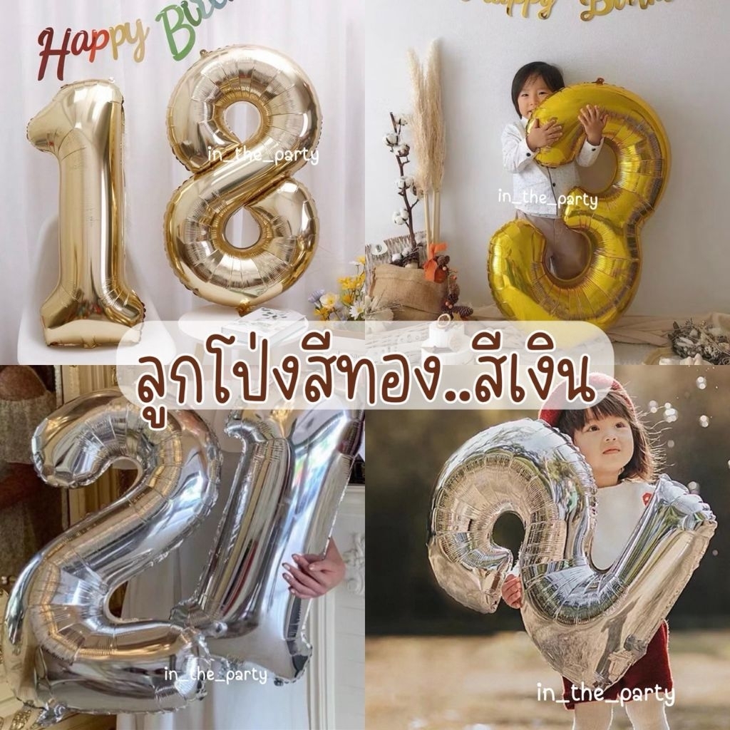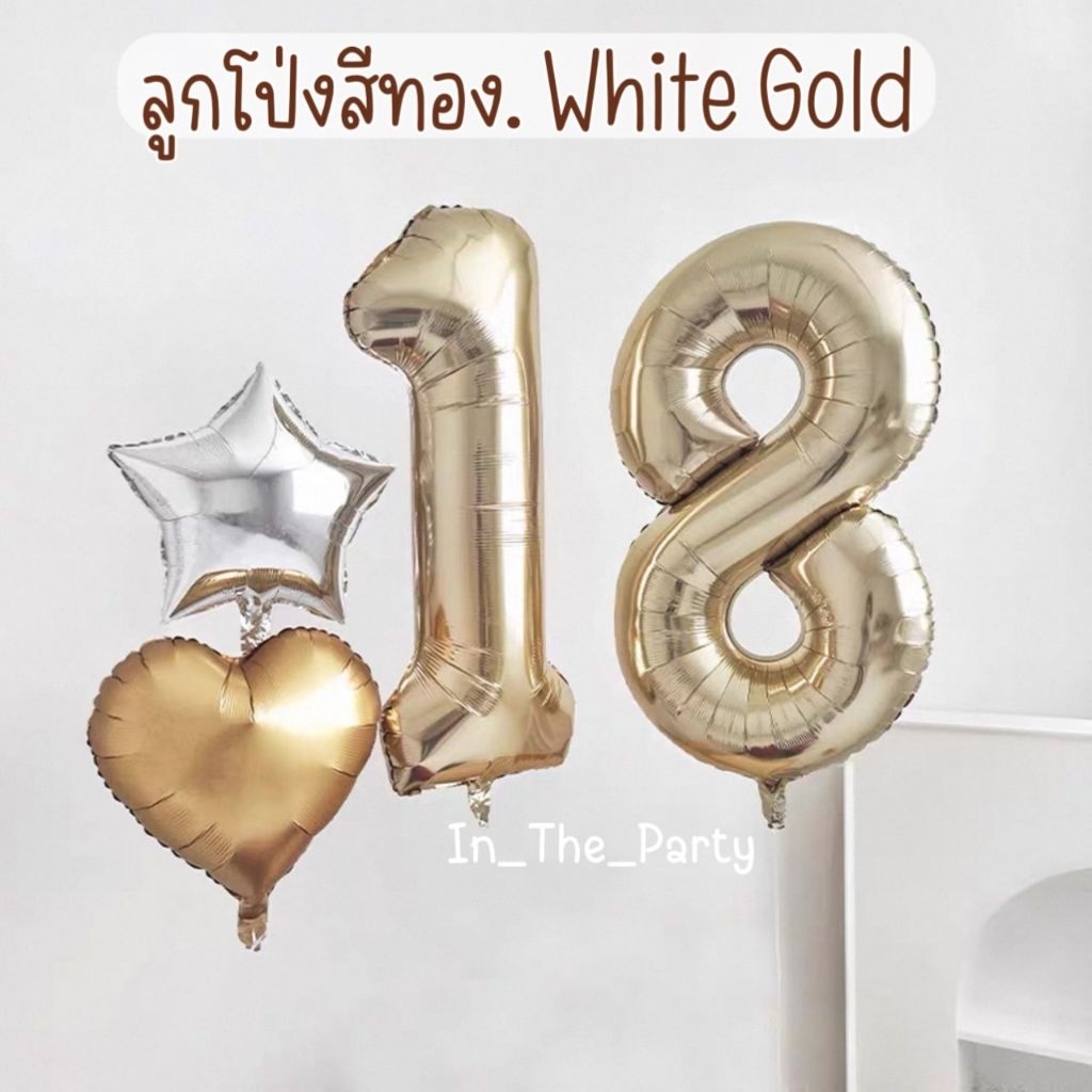 (ร้านไทย, ส่งทุกวัน) ลูกโป่งสีทอง White Gold ลูกโป่งสีเงิน สวยหรูดูแพง 32, 40 นิ้ว