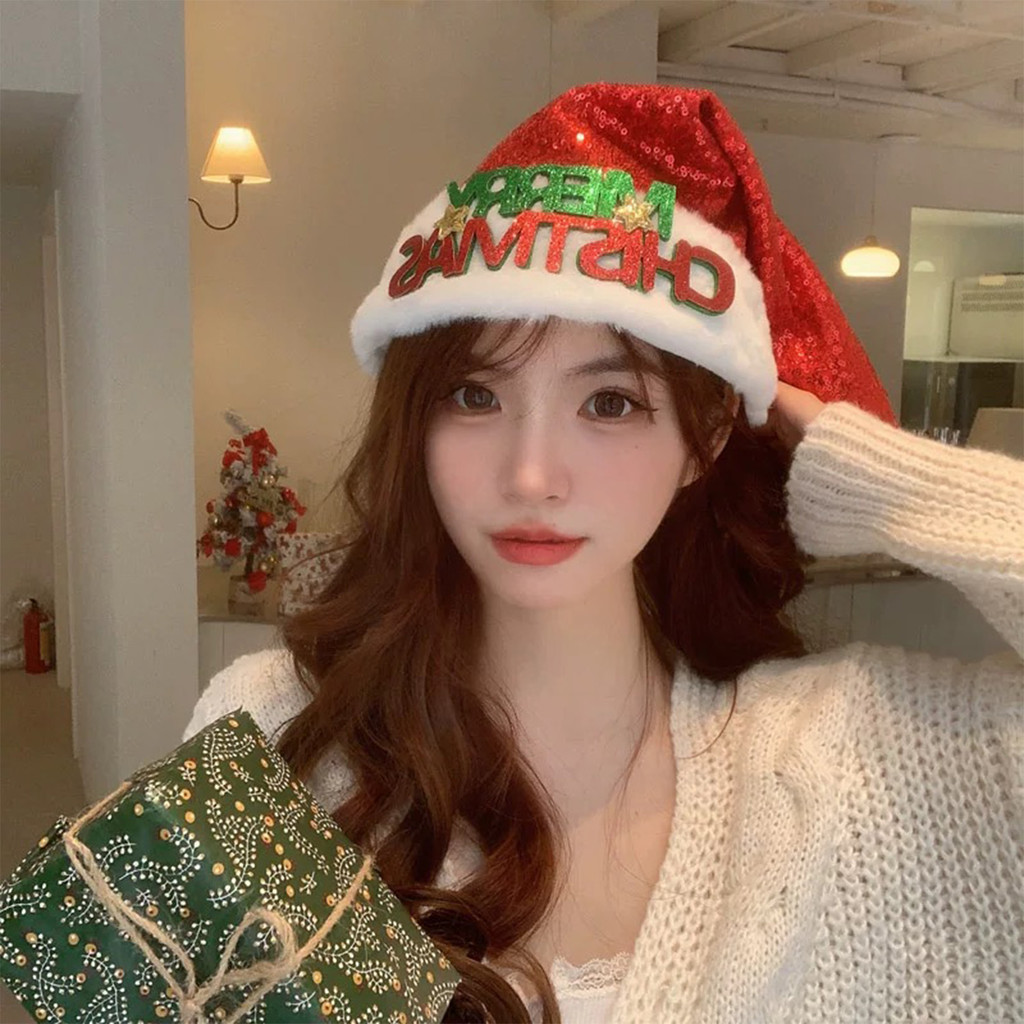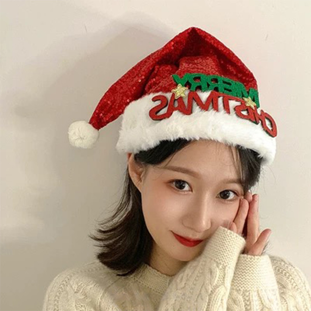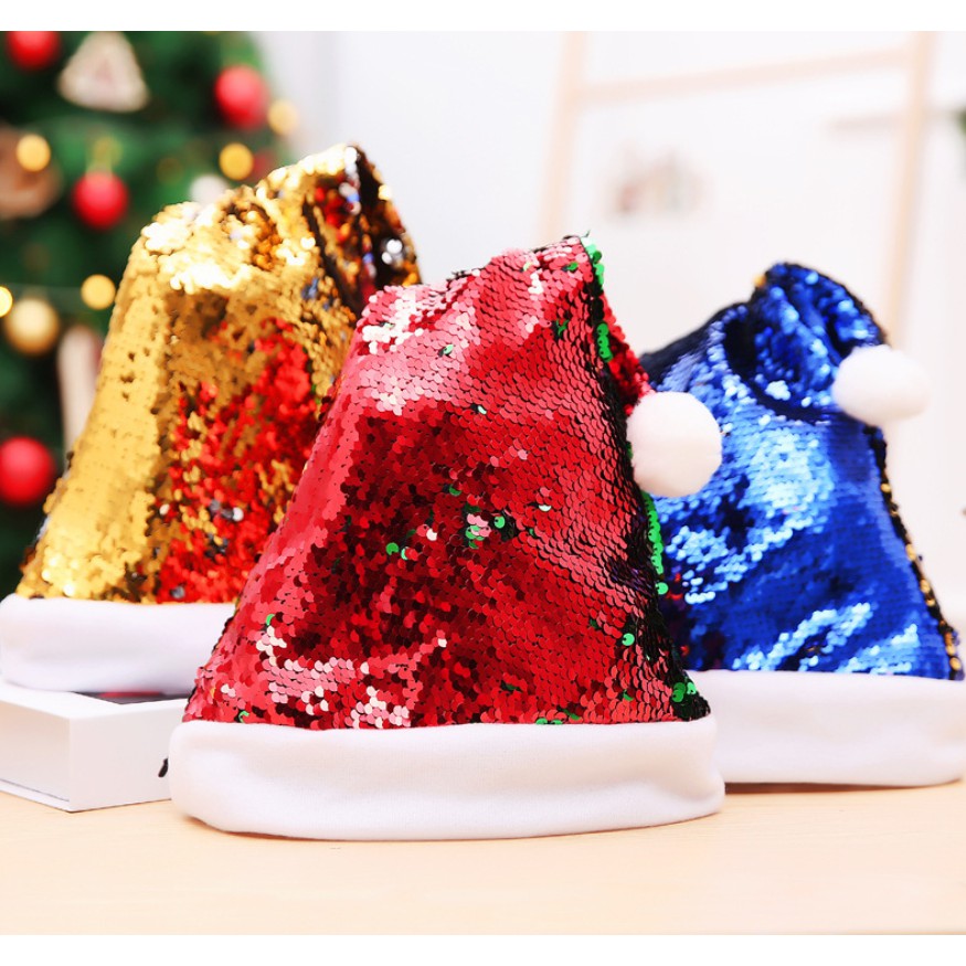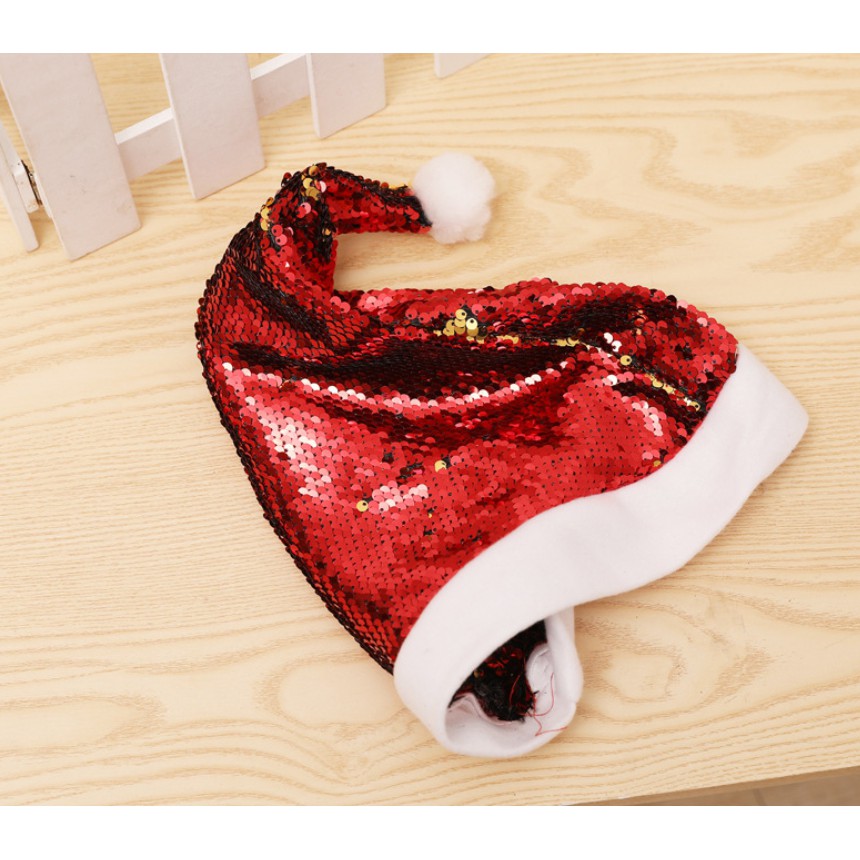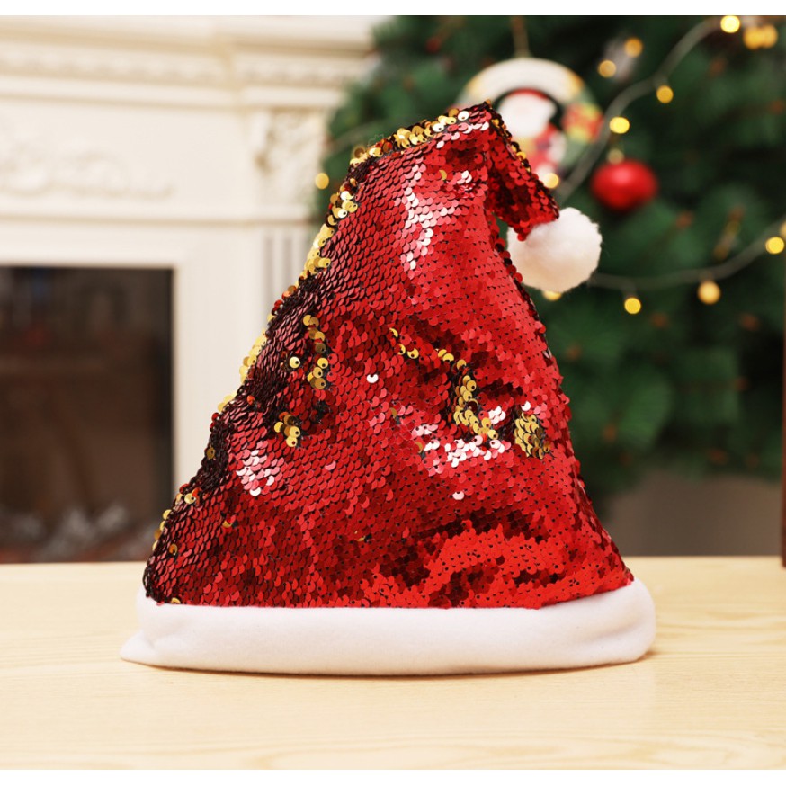 หมวกคริสมาส เลื่อม เกล็ดปลา สีแดง สีเขียว สีทอง ซานต้า แซนตี้ คริสมาส Christmas Santa Santy Sequin Hat