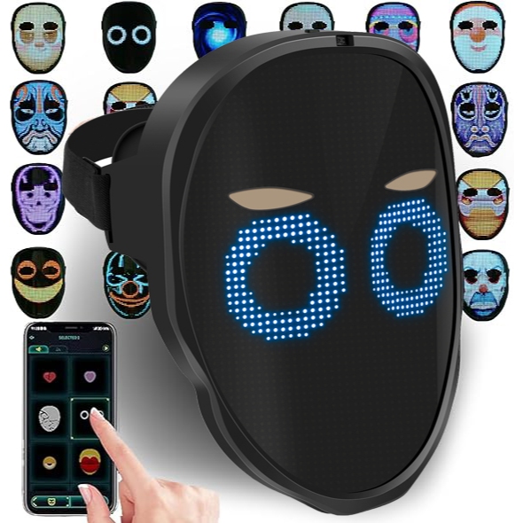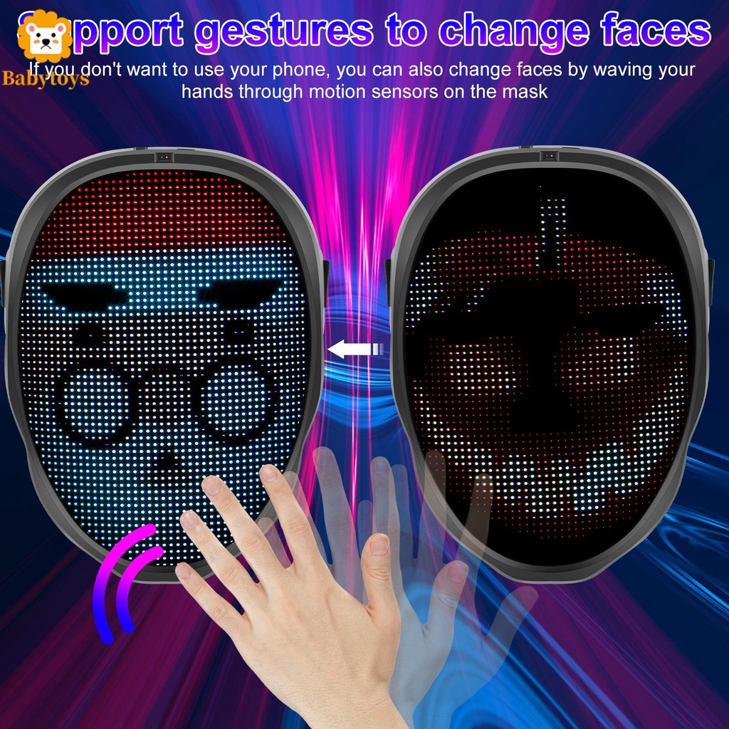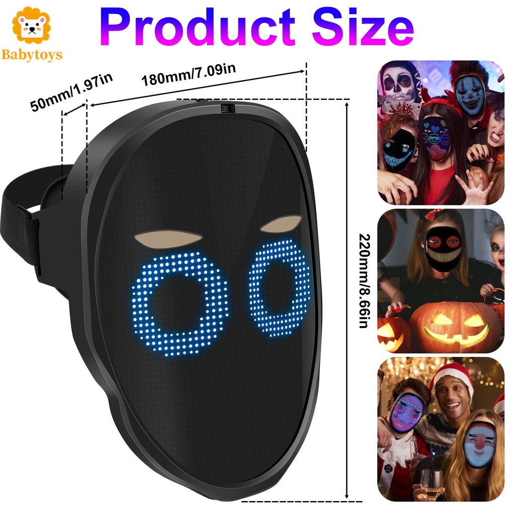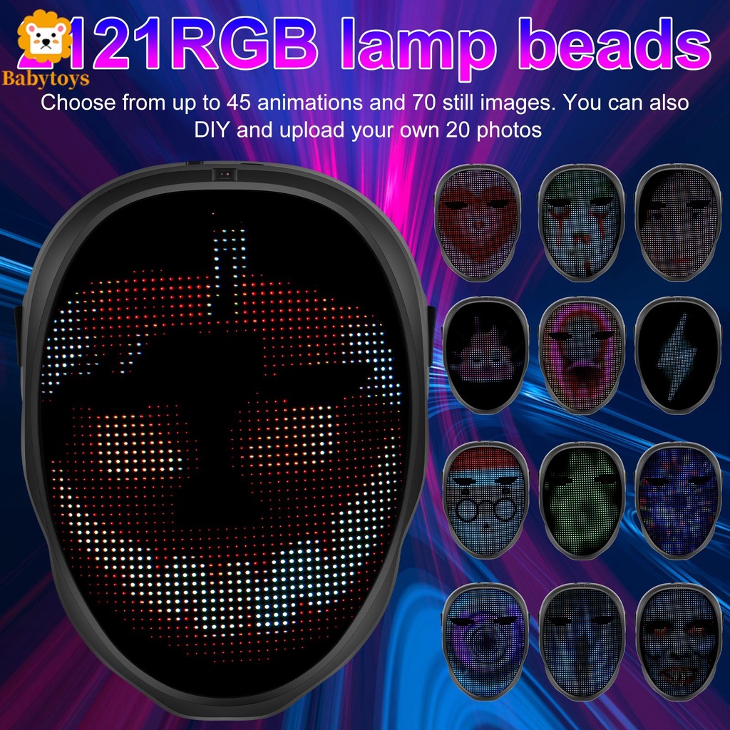 หน้ากากไฟ LED 2000mAh ชาร์จได้ ควบคุมผ่านแอ หน้ากากคอสเพลย์นีออน Led 2025 ใหม่ฮาโลวีน Rave Mask Decor Luminous LED Purge หน้ากากนีออนเรืองแสงสําหรับ Carnival Dark Night คอสเพลย์