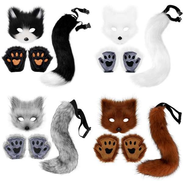 หน้ากากแฟนซี ชุดสุนัขจิ้งจอกตุ๊กตาทํามือฮาโลวีน, หน้ากากสุนัขจิ้งจอกจําลอง, หางสัตว์, cos, อุปกรณ์ประกอบฉากการแสดงของโรงเรียน, เครื่องประดับ
