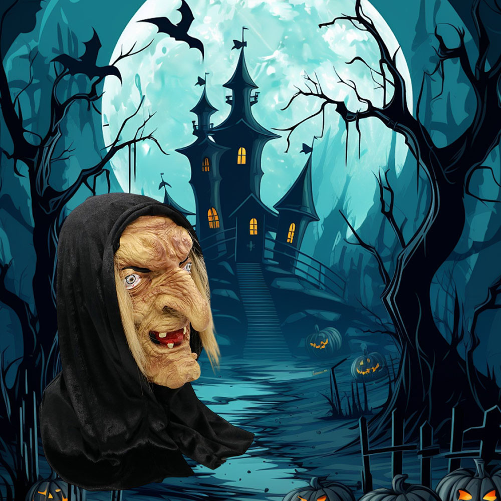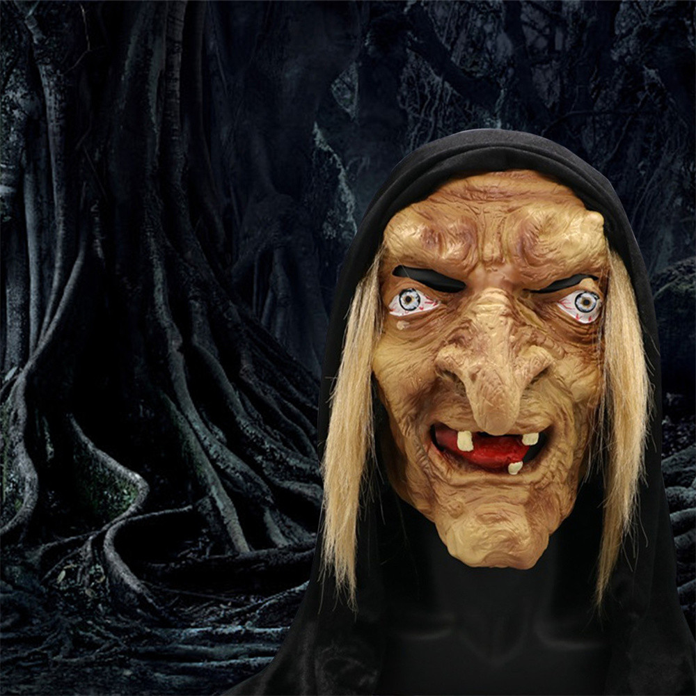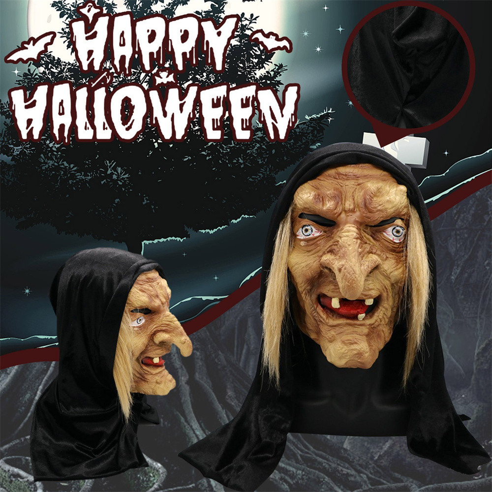 หน้ากากแม่มดหญิงชราสยองขวัญฮาโลวีน หน้ากากแม่มดเต็มหัวยางฮาโลวีน หน้ากากน่ากลัว ตกแต่งหน้ากาก ชุดคอสเพลย์สยองขวัญ จัดส่งรวดเร็ว