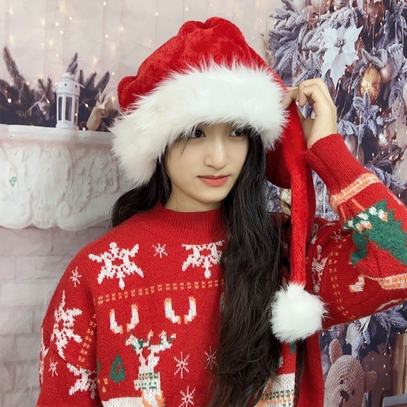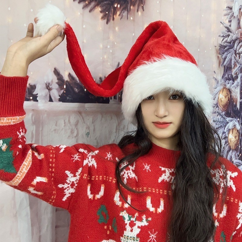 หมวกคริสต์มาสตุ๊กตายาวเรียบง่ายอินเทรนด์ – หมวกซานต้าสีแดงน่ารัก Cozy หมวกปีใหม่