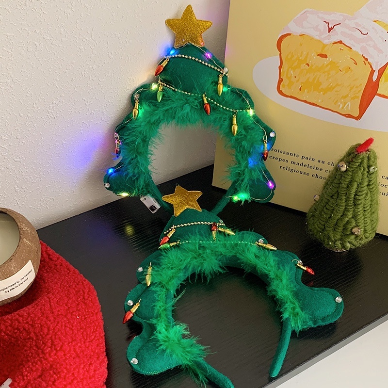 หมวกคริสมาสต์ หมวกต้นคริสมาสต์ ที่คาดผมคริสมาสน่ารักๆมีไฟLED คาดผมHappy Birthday เหมาะสำหรับงานปาร์ตี้ พร้อบถ่ายรูป