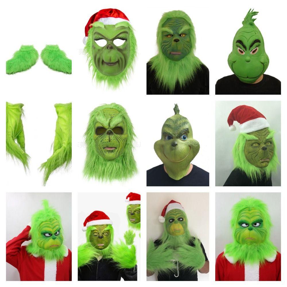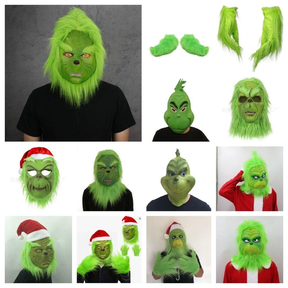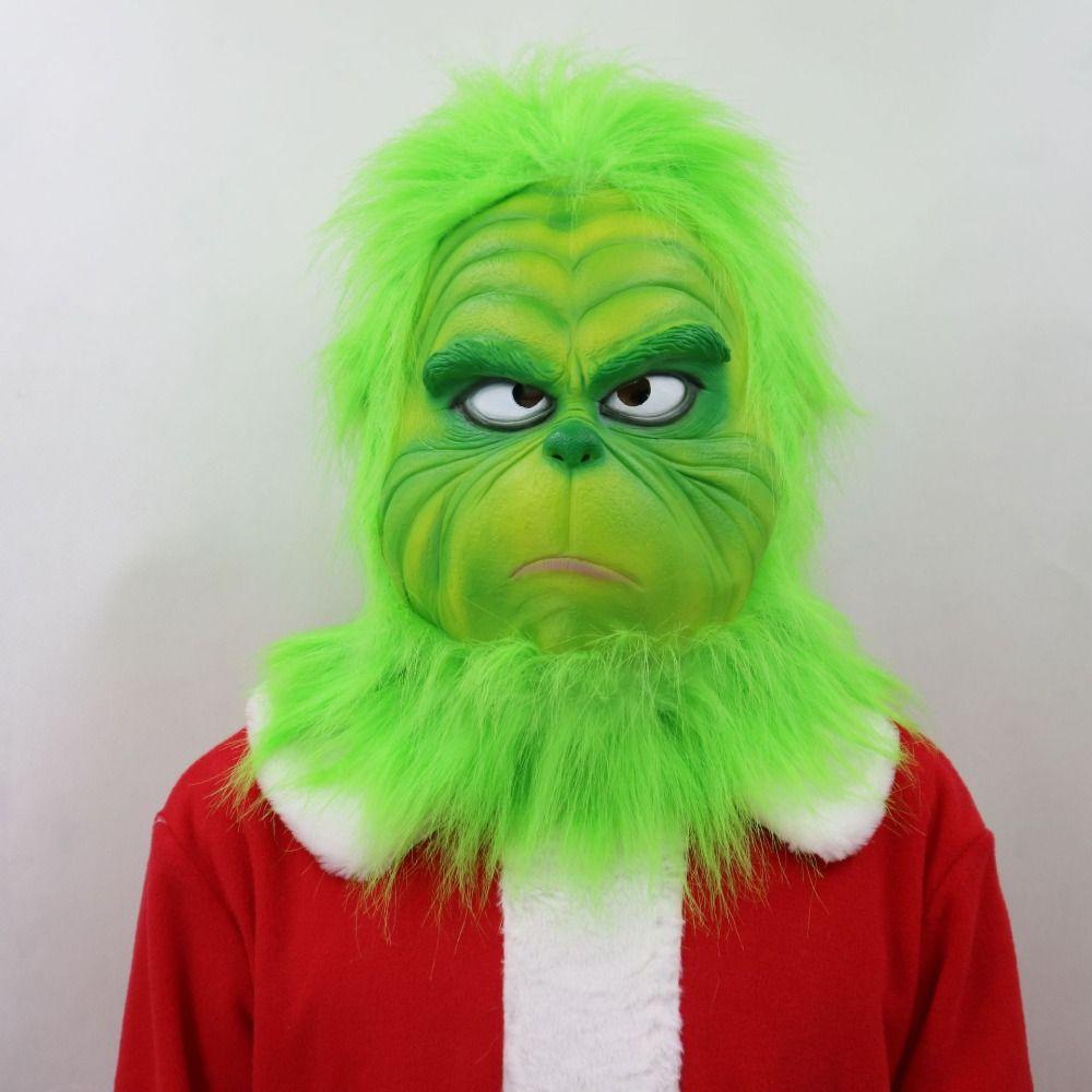 Kentontllb หน้ากาก Grinch, ชุดซานตาคลอสสวมศีรษะสัตว์, ชุดคริสต์มาสคลุมเต็มหน้ายางนุ่ม