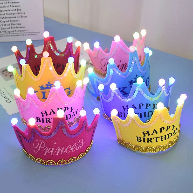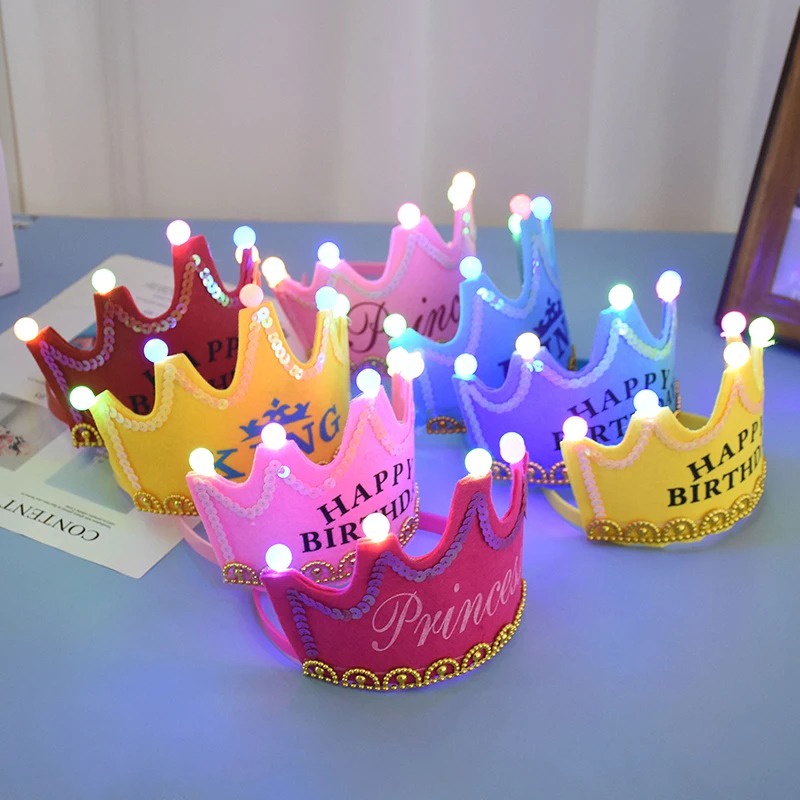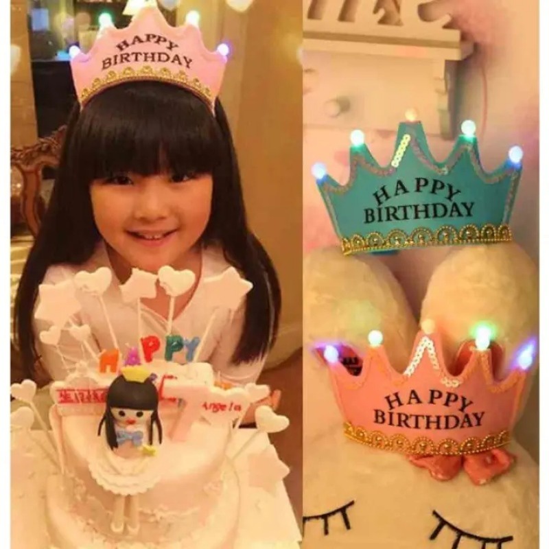 Happy Birthday หมวกมงกุฎเจ้าหญิง มีไฟ LED สําหรับตกแต่งปาร์ตี้วันเกิดเด็ก