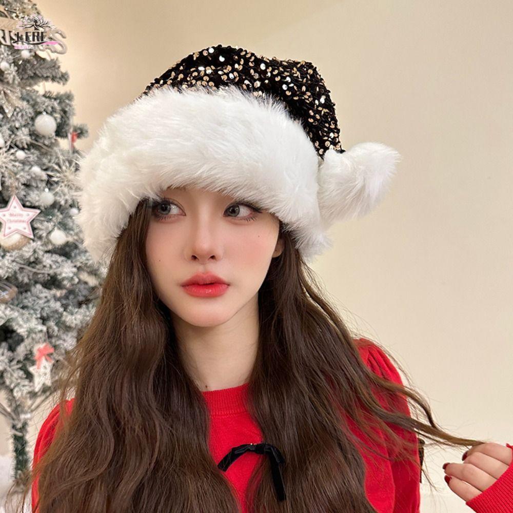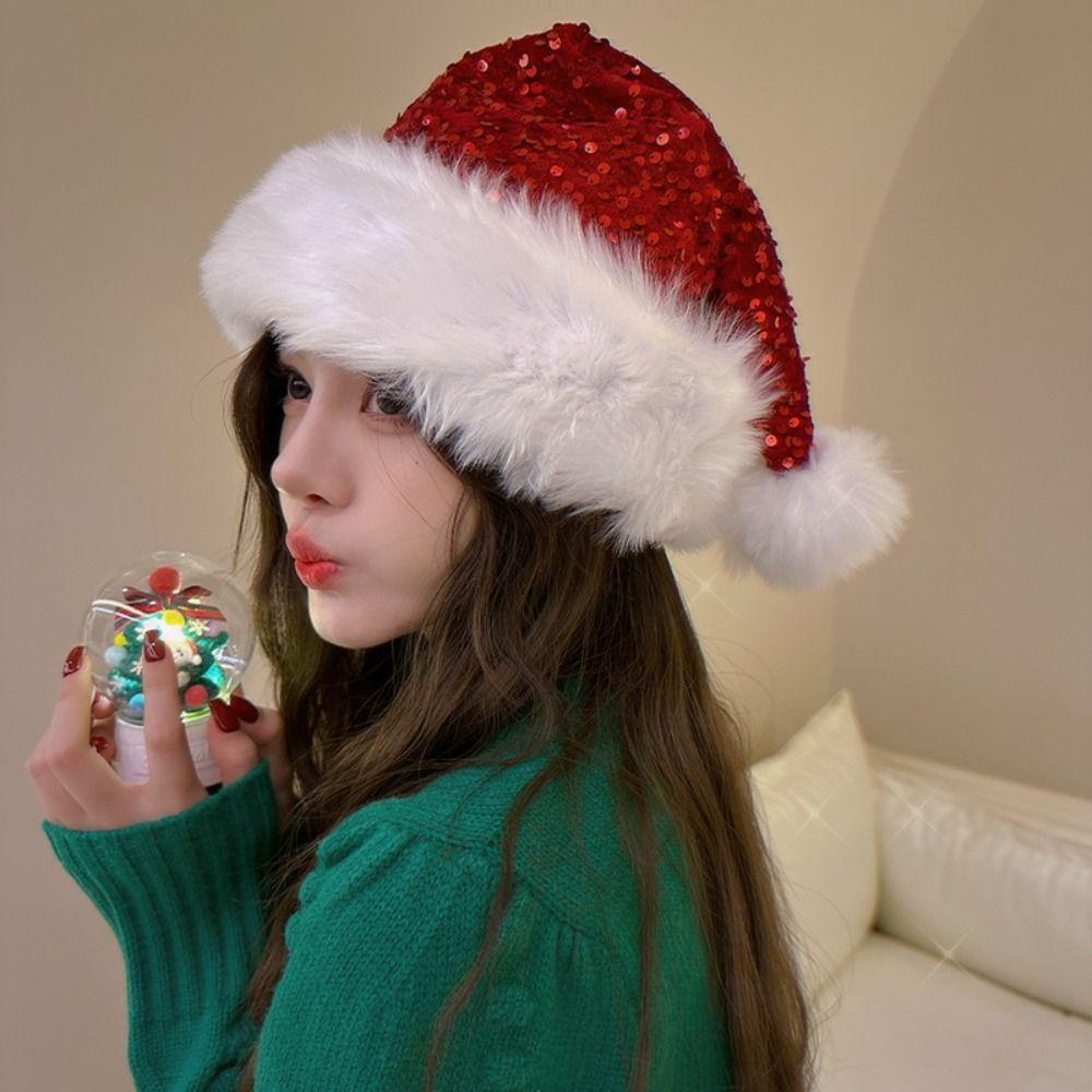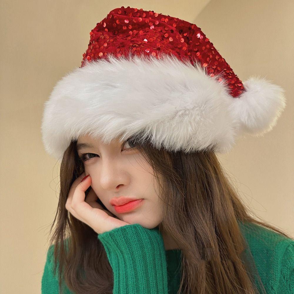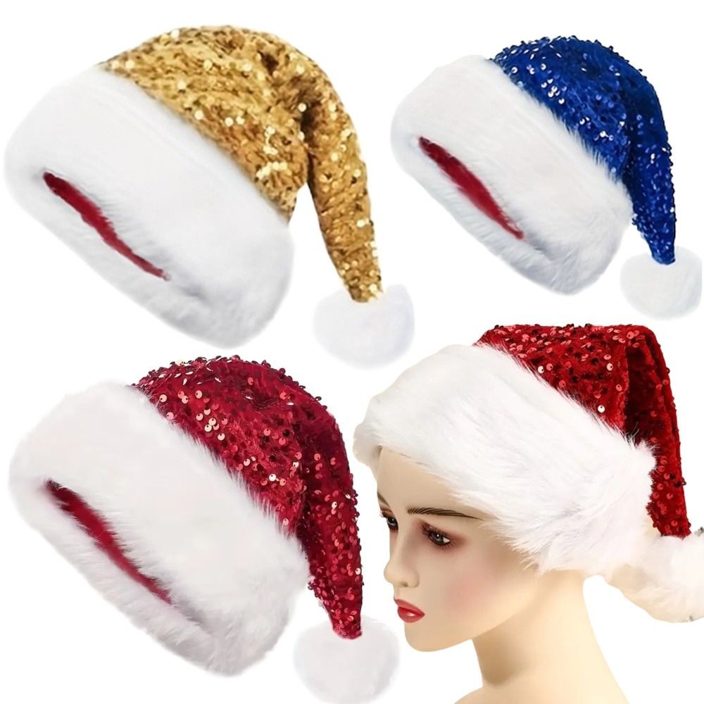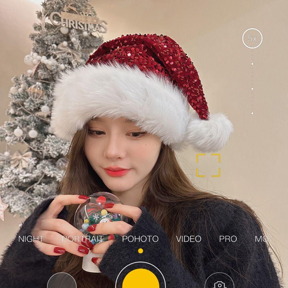 Jeremy1 หมวกซานตาคลอส ผ้ากํามะหยี่ขนนิ่ม ประดับเลื่อม สีแดง สําหรับตกแต่งเทศกาลคริสต์มาส ปีใหม่ ฤดูหนาว ฤดูใบไม้ร่วง