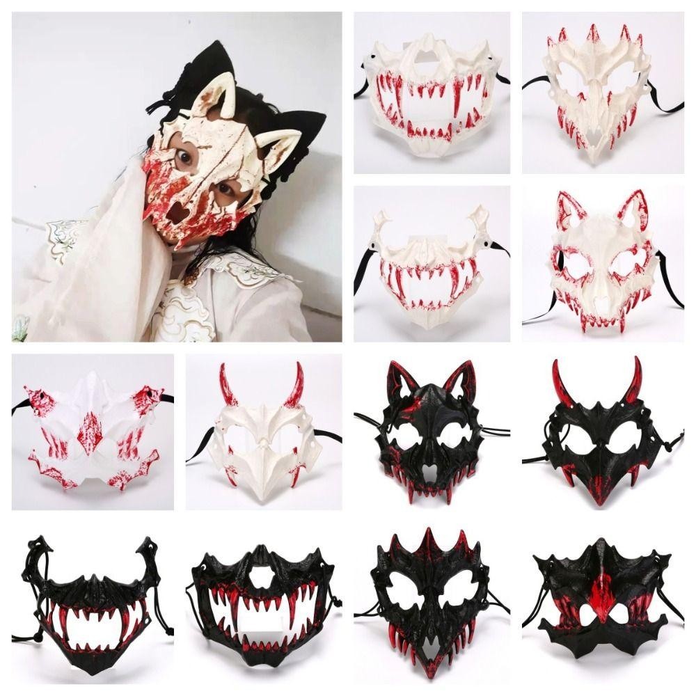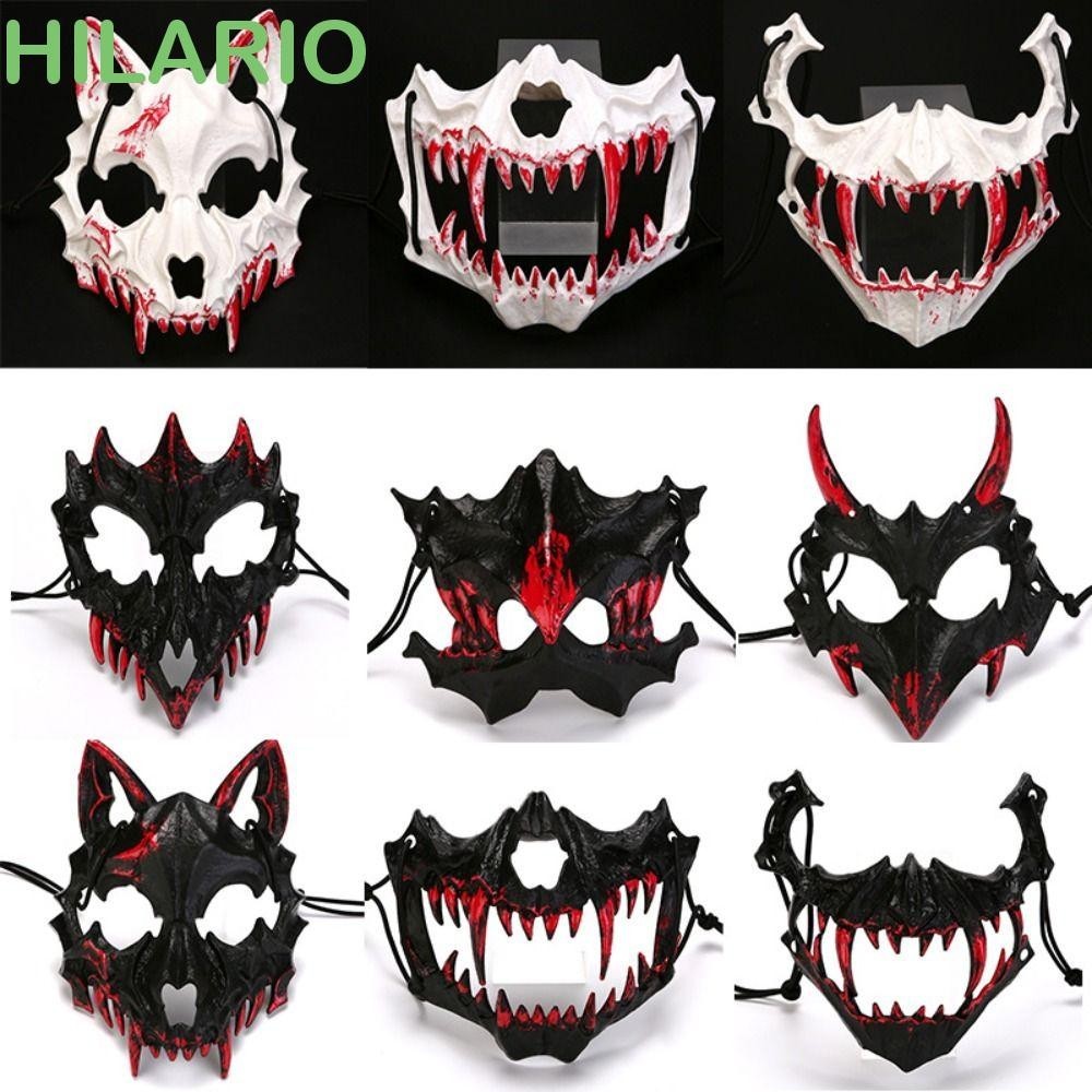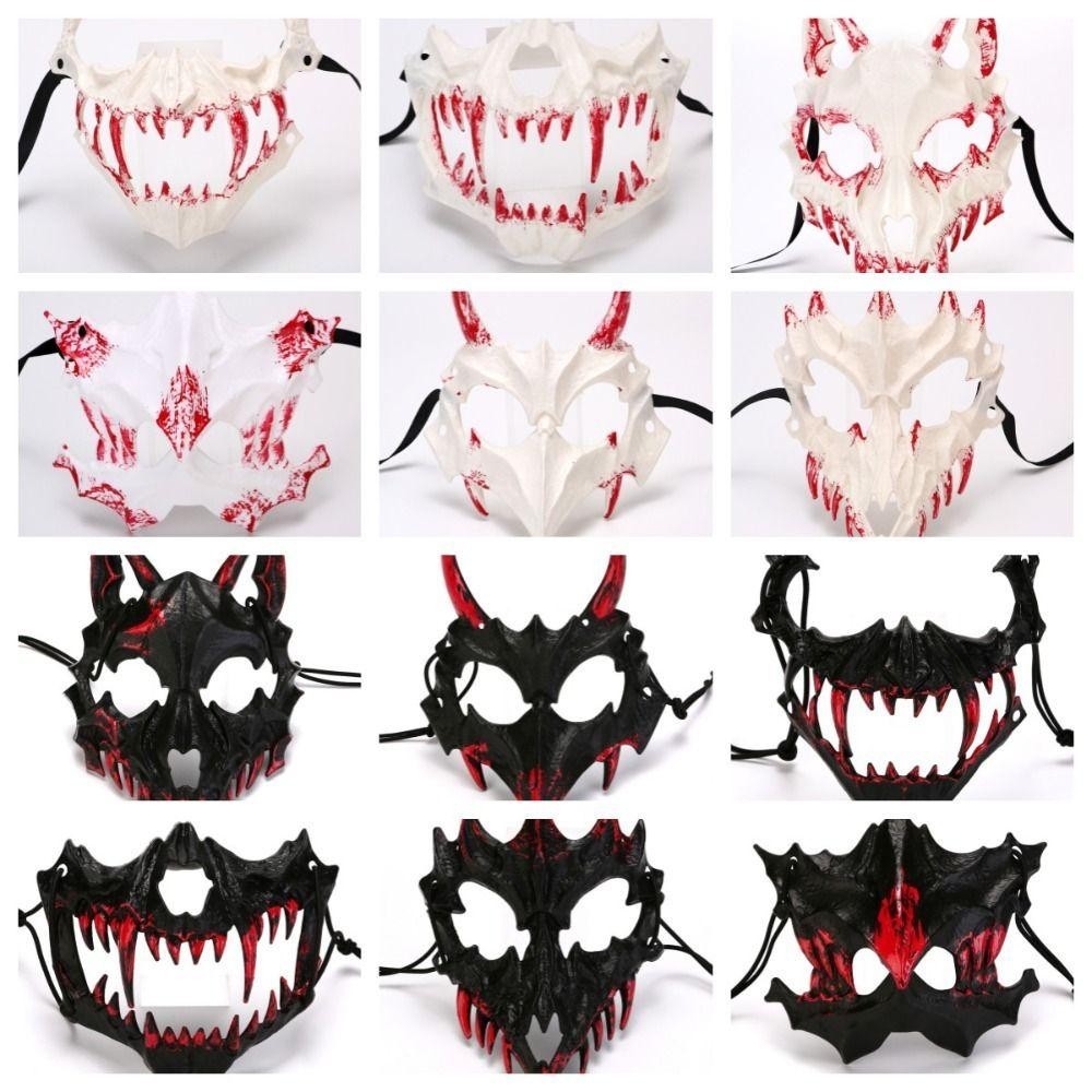 Hilario Bloody Skull Mask, ฮาโลวีนเรซิ่นยาวฟันหน้ากาก, Gothic Half Mask Eye Mask Headwear Party Supplies