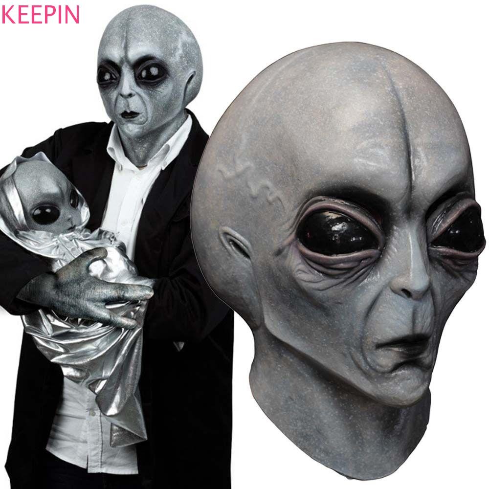 Keepin UFO Alien Skull Mask, หมวกกันน็อคยางเอเลี่ยนน่ากลัว, คอสเพลย์สวมหน้ากากที่สมจริงที่รุนแรง