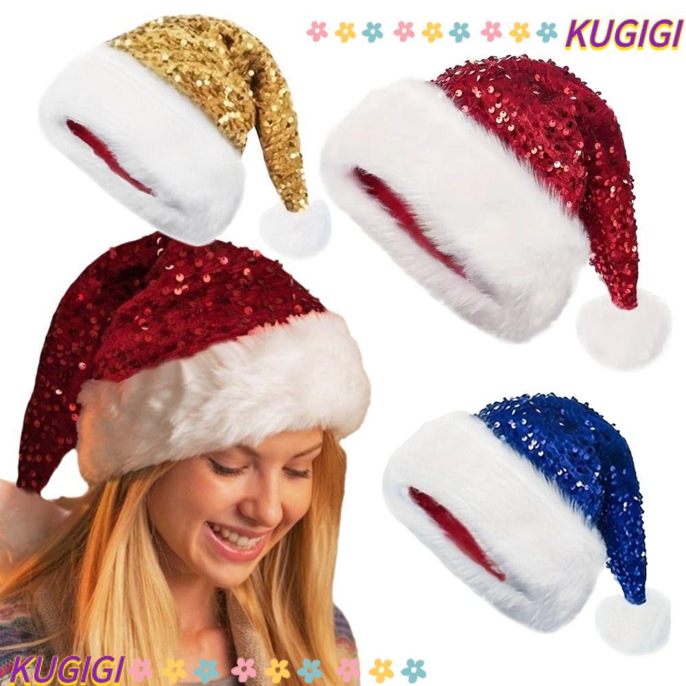 KUGIGI หมวกซานตาคลอสคริสต์มาส, Extra Thicken สีแดง Glitter เลื่อม Santa หมวก, กํามะหยี่นุ่ม Glittery Sparkly วันหยุด Headwear Party Supplies