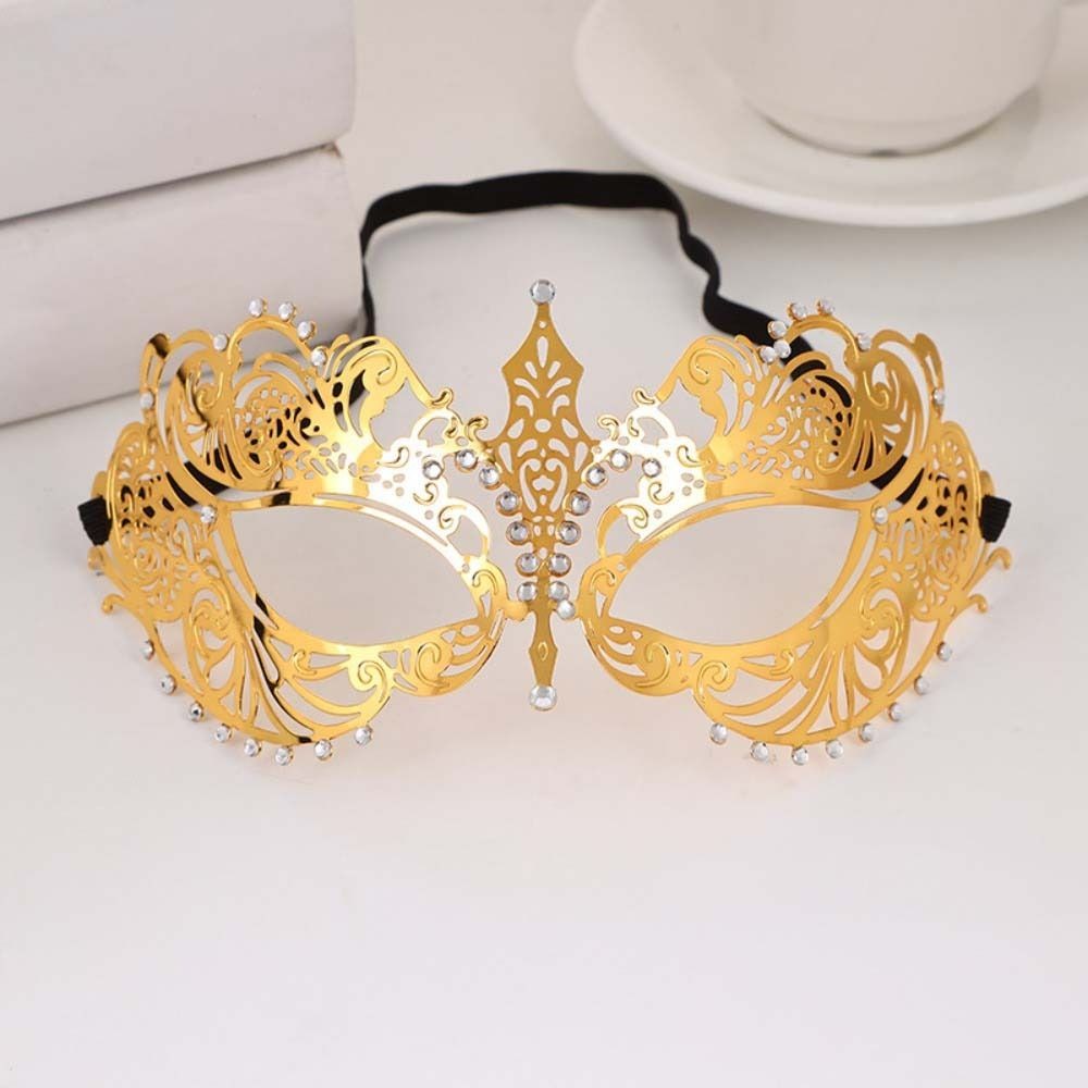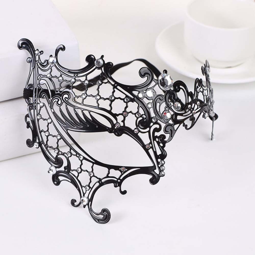 GLENESIA หน้ากากครึ่งหน้าฮาโลวีน, หน้ากากโลหะลูกไม้สีดําวินเทจ Venetian, วงยืดหยุ่นกลวงออกหรูหรา Handmade Masquerade หน้ากากเจ้าหญิงชุดแฟนซี