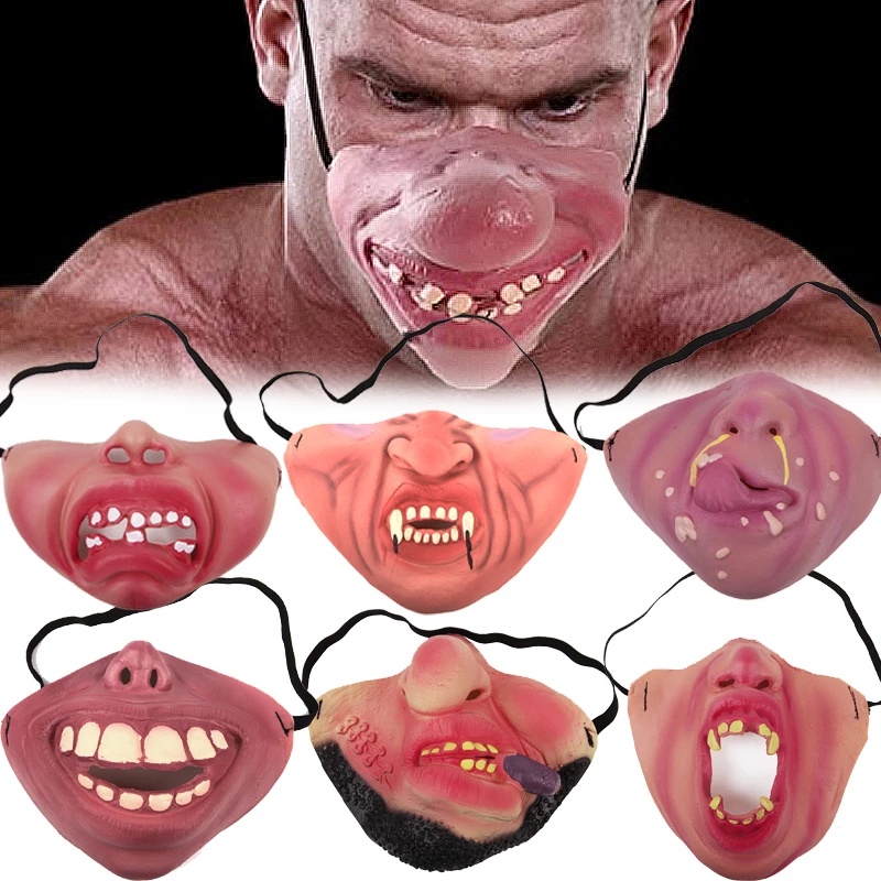 หน้ากากยาง แบบครึ่งหน้า ยืดหยุ่น เครื่องแต่งกายฮาโลวีน สยองขวัญ สําหรับตกแต่งปาร์ตี้
