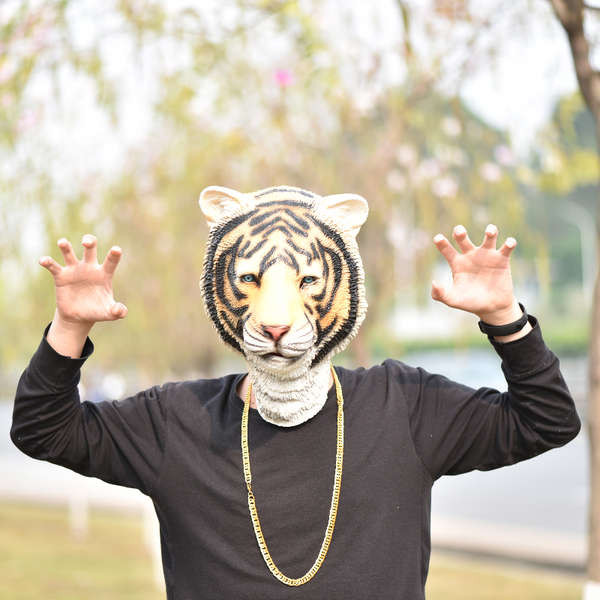 หน้ากากสัตว์ฮาโลวีน Masquerade ผู้ใหญ่ Tiger Husky Latex หน้ากากหมวกสัตว์ Golden Retriever หัวสุนัข