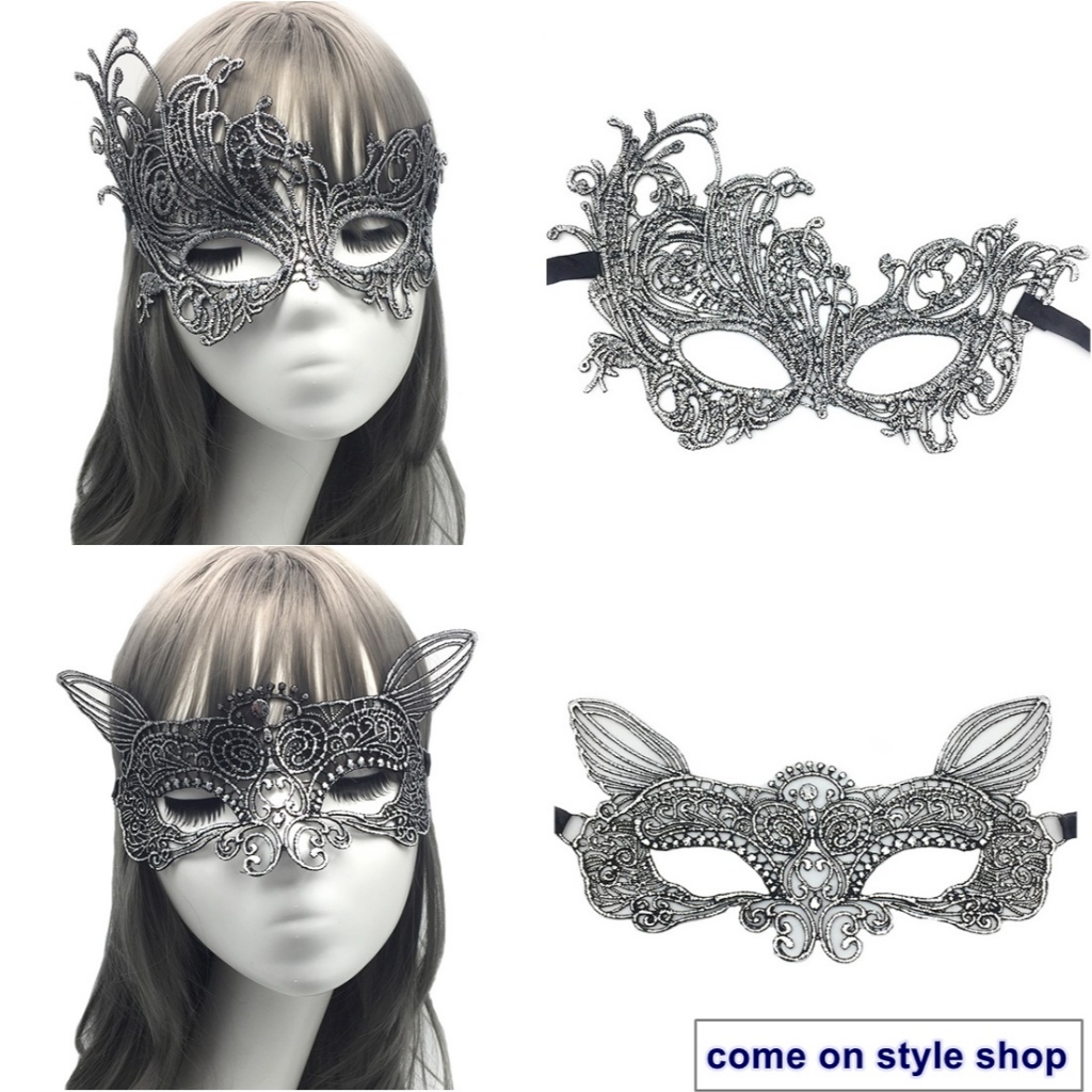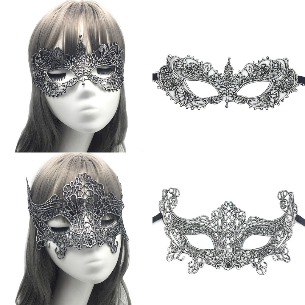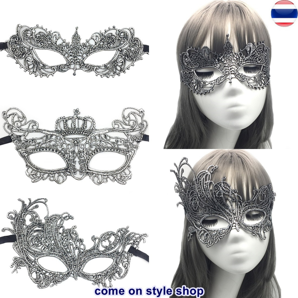 หน้ากากปาร์ตี้ แฟนซี ผ้าลูกไม้ สีเงิน ออกงาน การแสดง ฮาโลวีน วันเกิด ถ่ายภาพ Silver Party Lace Fancy Mask พร้อมส่งจากไทย
