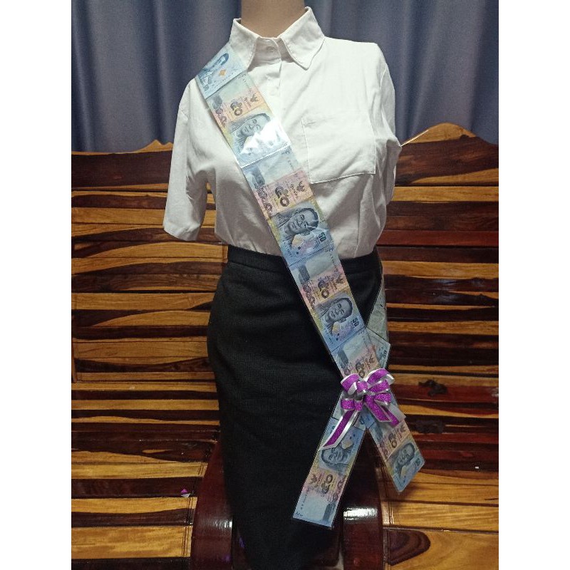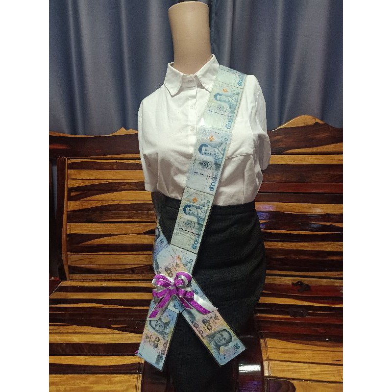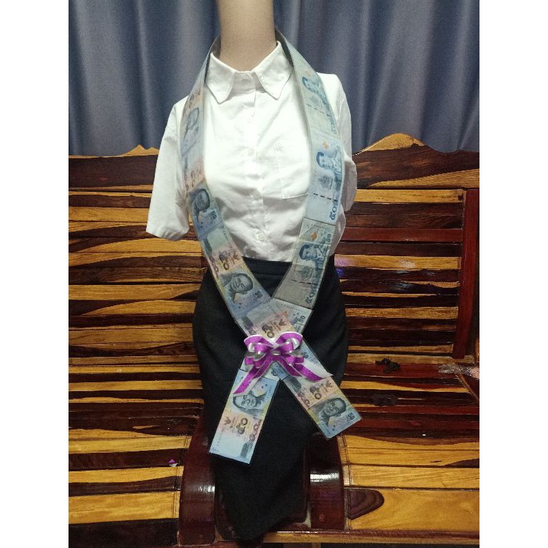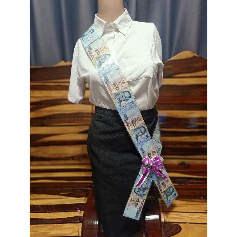 สายสะพายเงิน สายสะพายซองใส่เงิน ซองใสใส่เงิน พวงมาลัยคล้องคอ นำไปใส่ธนบัตรได้ทุกแบงค์ 1 เส้นใส่ได้14ใบ