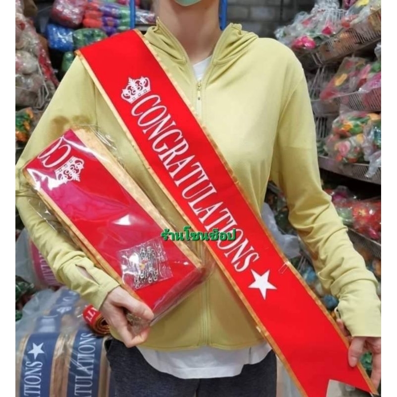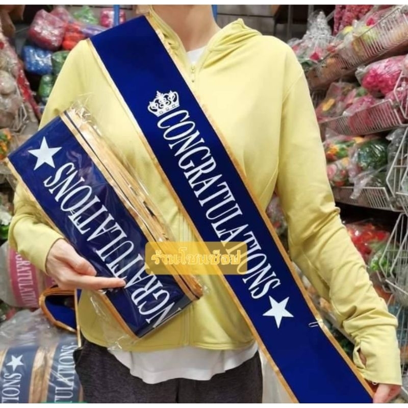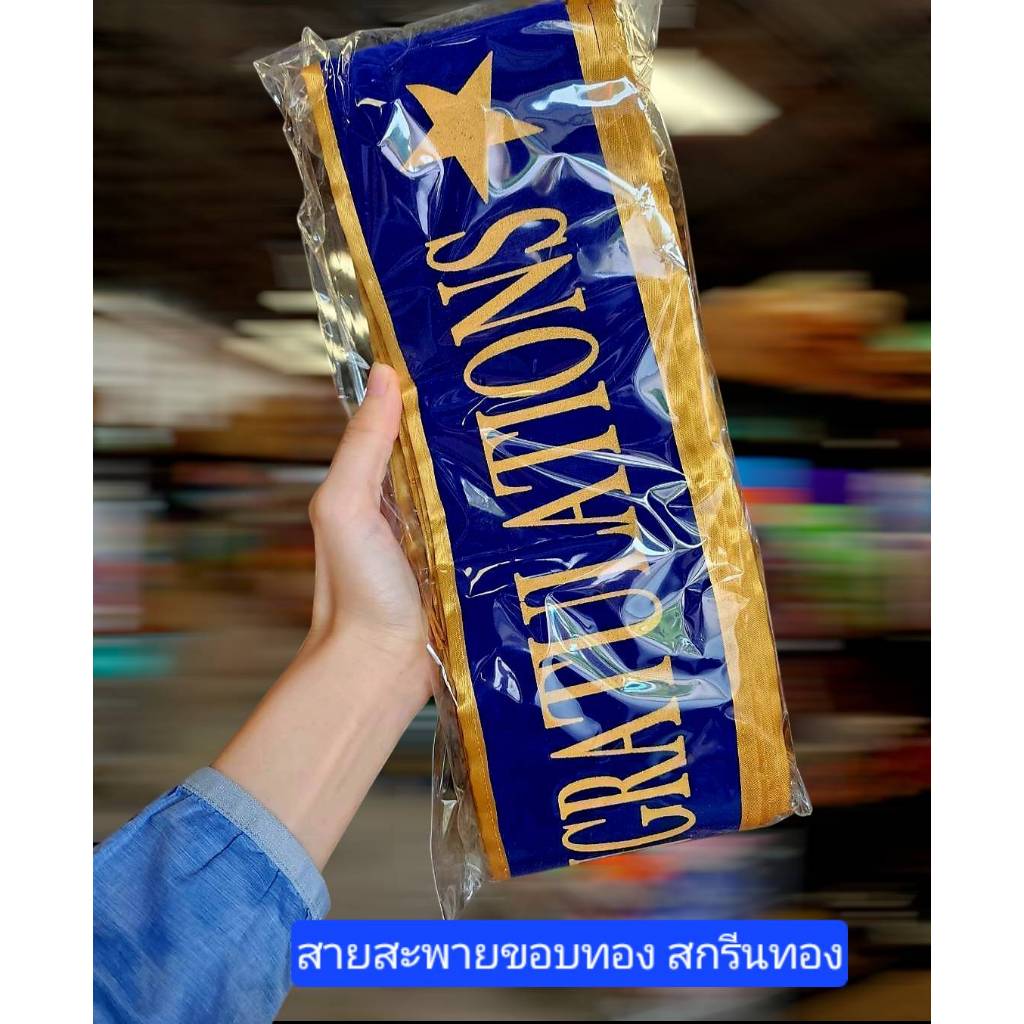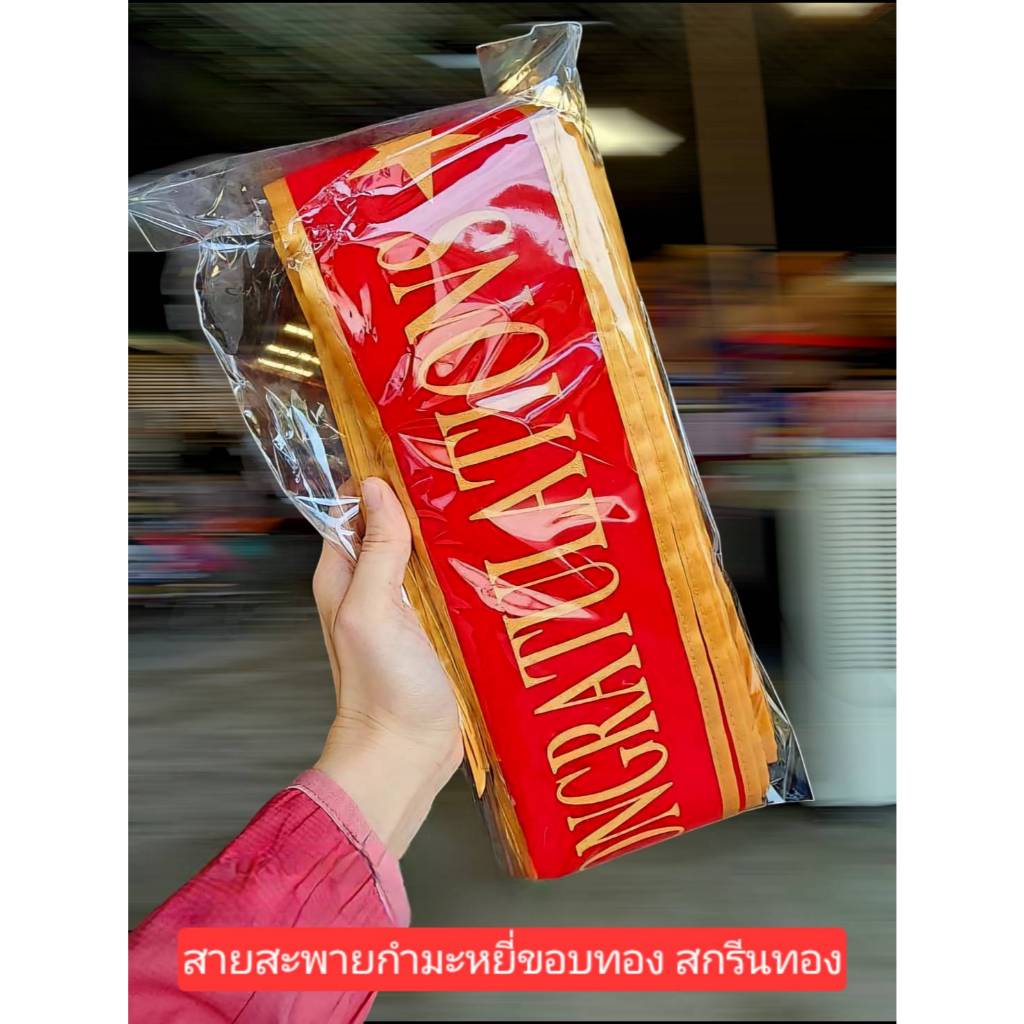 ✅(ถูกที่สุด พร้อมส่ง) ?? สายสะพายปัจฉิม ผ้ากำมะหยี่ขอบทอง งานรับปริญญา Congratulations +เข็มกลัด