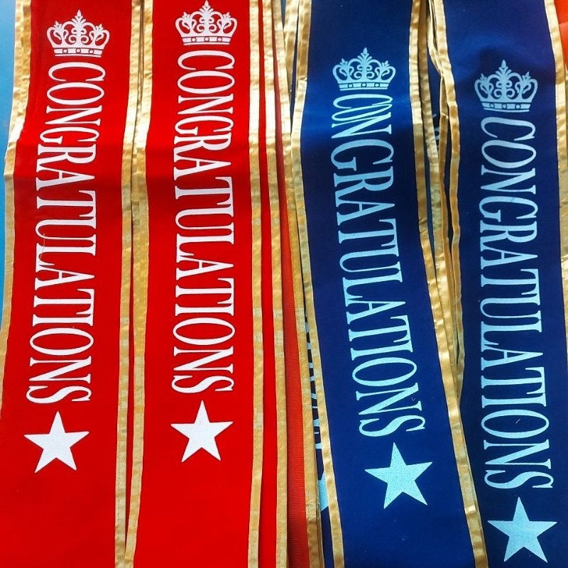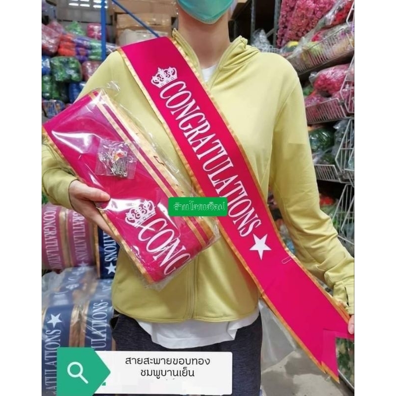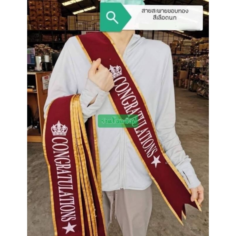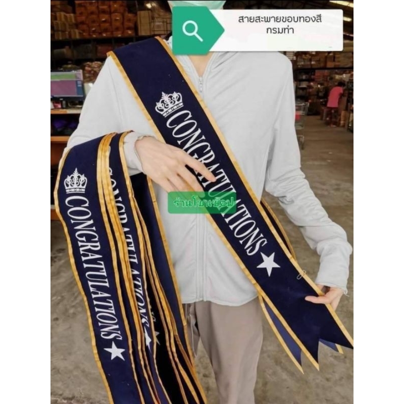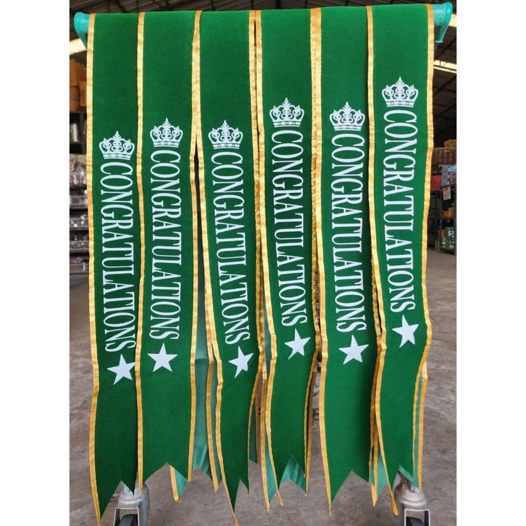 ✅(ถูกที่สุด พร้อมส่ง) ?? สายสะพายปัจฉิม ผ้ากำมะหยี่ขอบทอง งานรับปริญญา Congratulations +เข็มกลัด