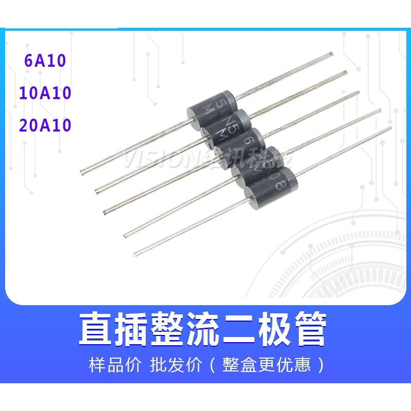 (ซื้อหนึ่งสถานี) ไดโอดวงจรเรียงกระแสไดโอด 10A10 6A10 Inline R6 10A 1 000V ขายาว พลังงานสูง