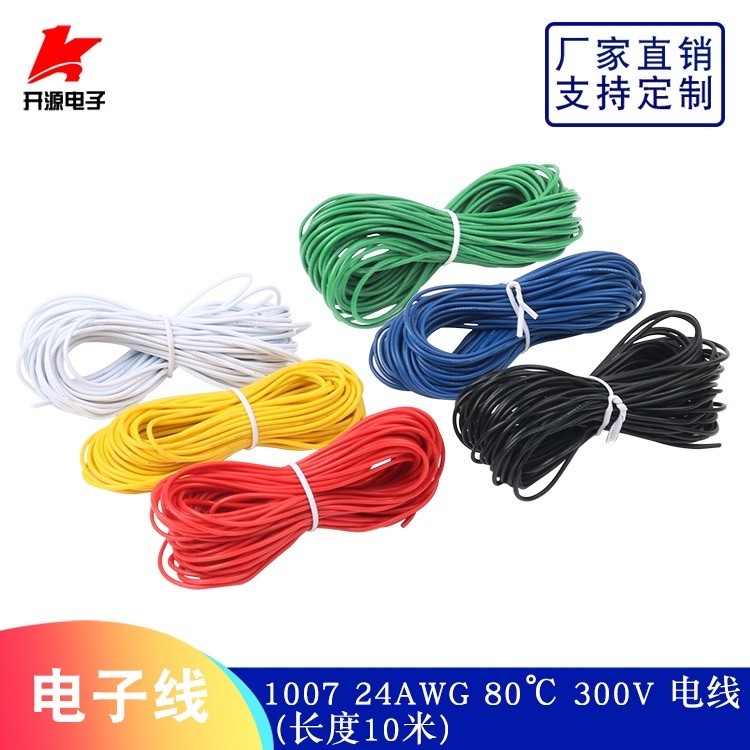 ((ยาว 10 เมตร) UL1007-24AWG สายไฟอิเล็กทรอนิกส์ หลากสี 80℃ลวดทองแดง เบอร์ 300v ลวดทองแดงดีบุก ตะกั่ว 24 สาย