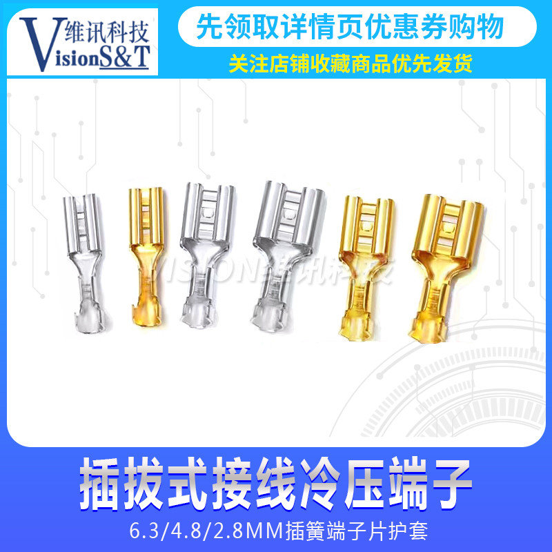 ((แพ็ค 10 ชิ้น) ปลั๊ก-ใน ขั้วต่อเย็นกดขั้ว 6.3/4.8/2.8 มม. ปลั๊ก-ใน ฤดูใบไม้ผลิขั้วทองแดงเชื่อมต่อปลอกหญิง Connec