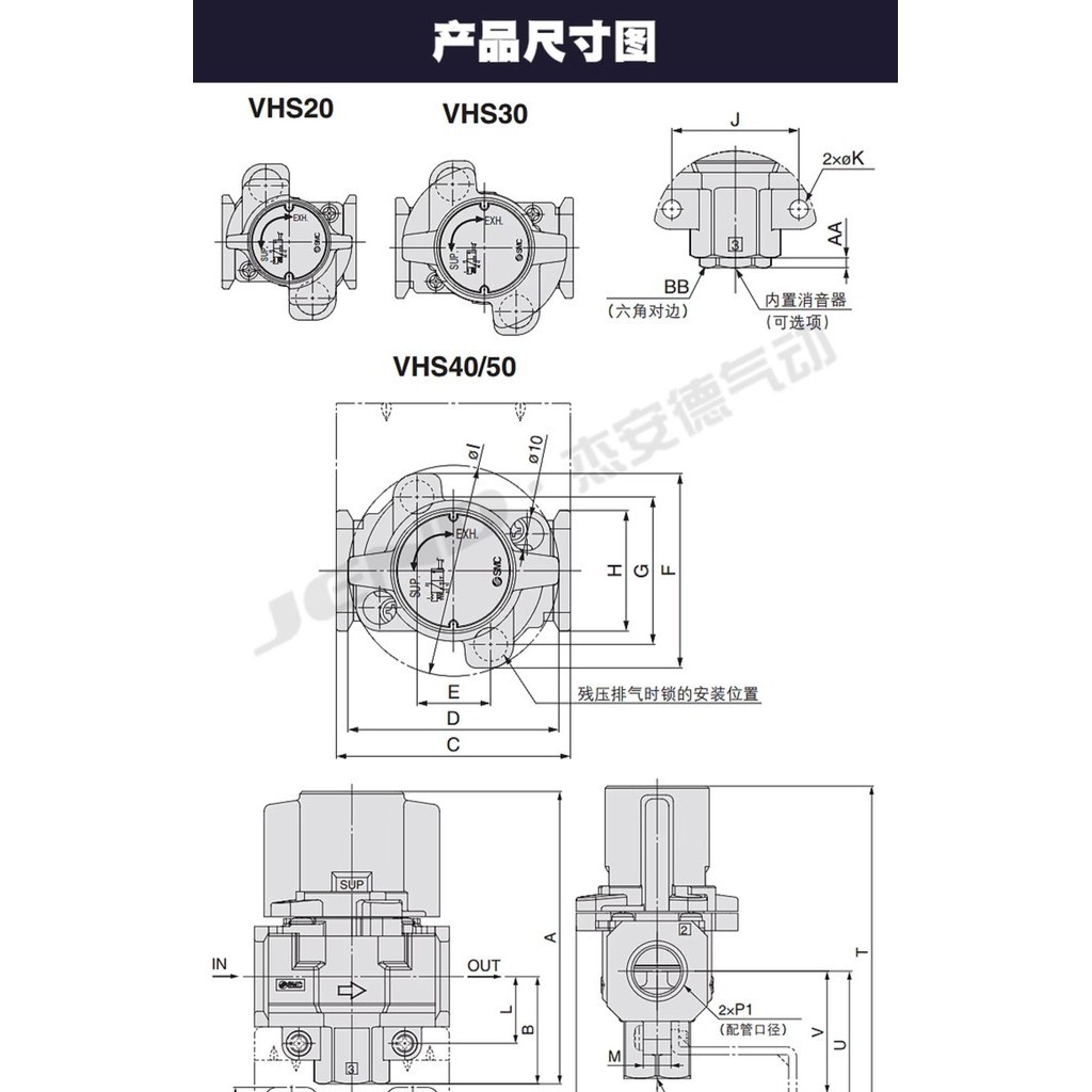 Smc ประเภทนิวเมติก Residual ความดัน Release วาล์ว VHS20-02A VHS30-03A VHS40-04A Residual ความดันคู่มือวาล์ว