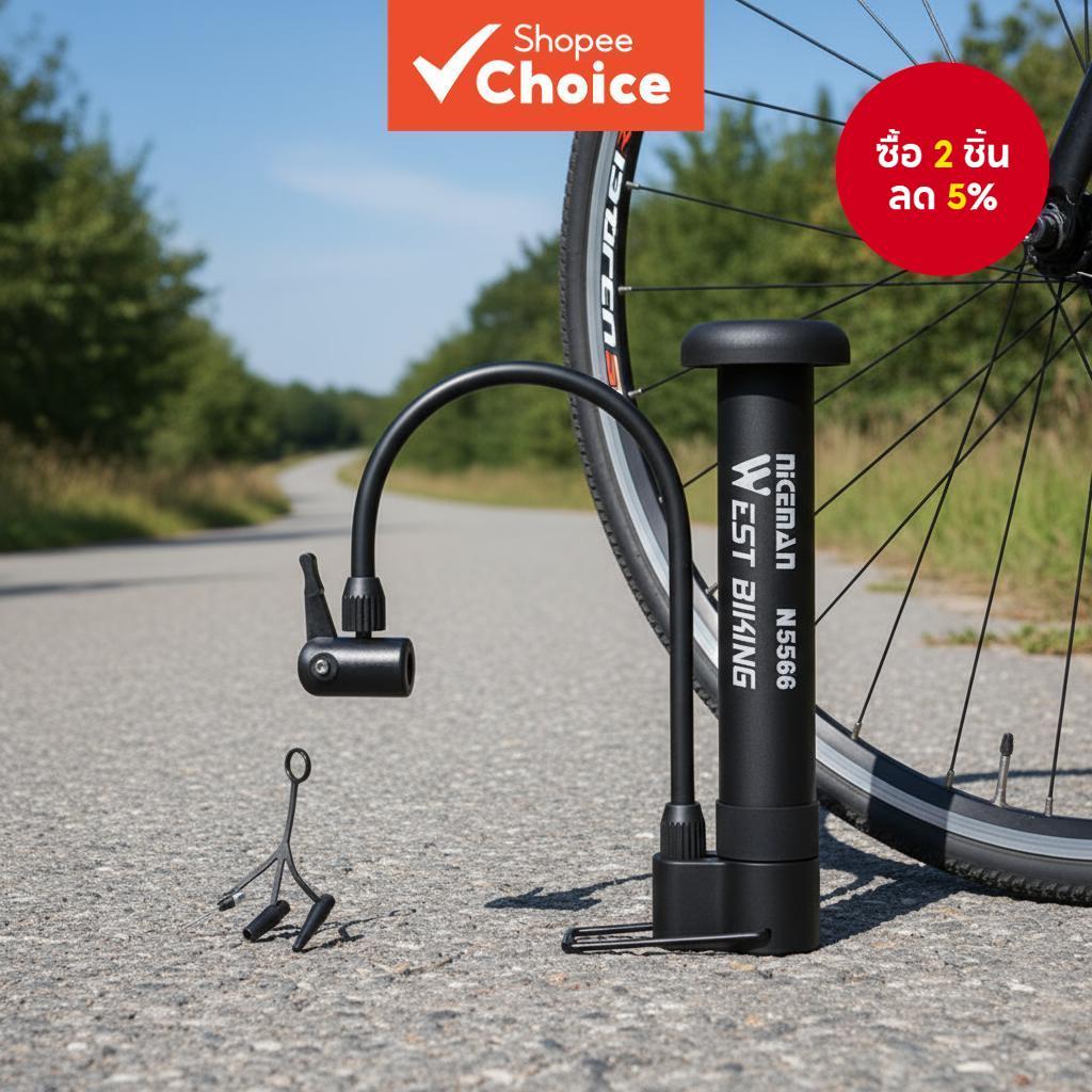 WEST BIKING ปั๊มพกพาแรงดันสูง 80Psi สําหรับจักรยานเสือภูเขา พร้อมฐานสําหรับเติมลมยาง