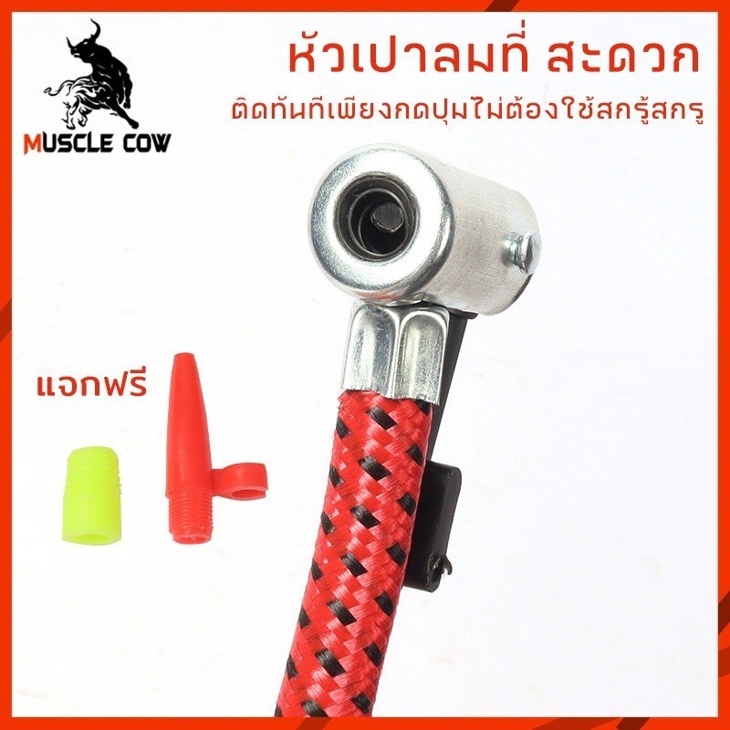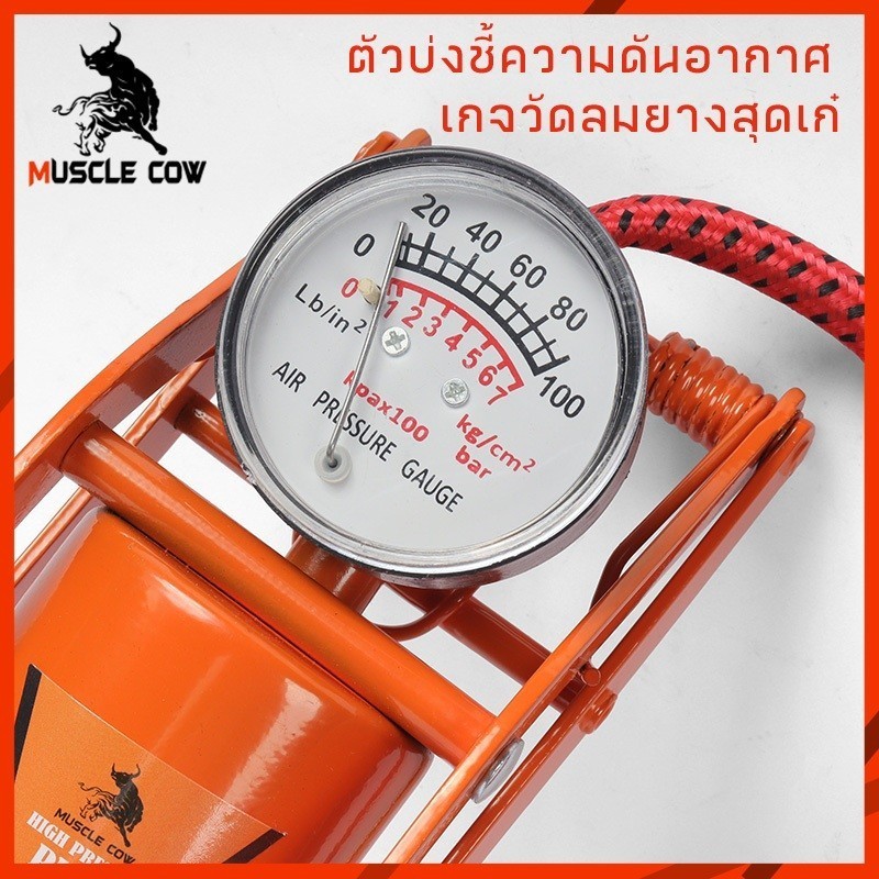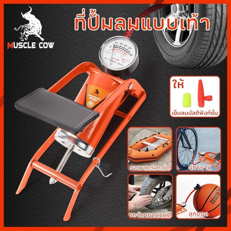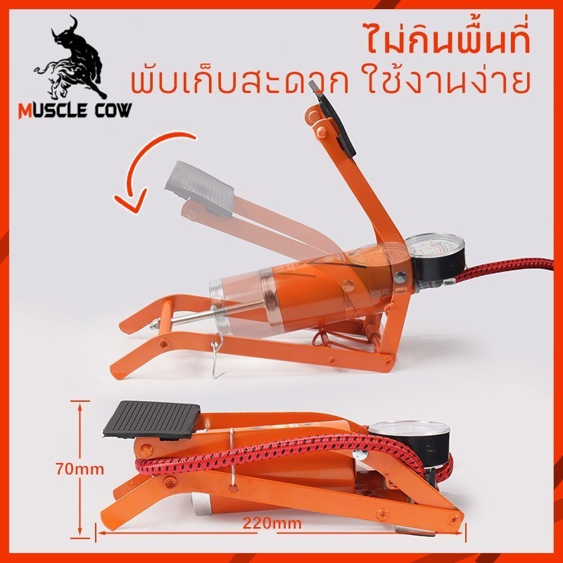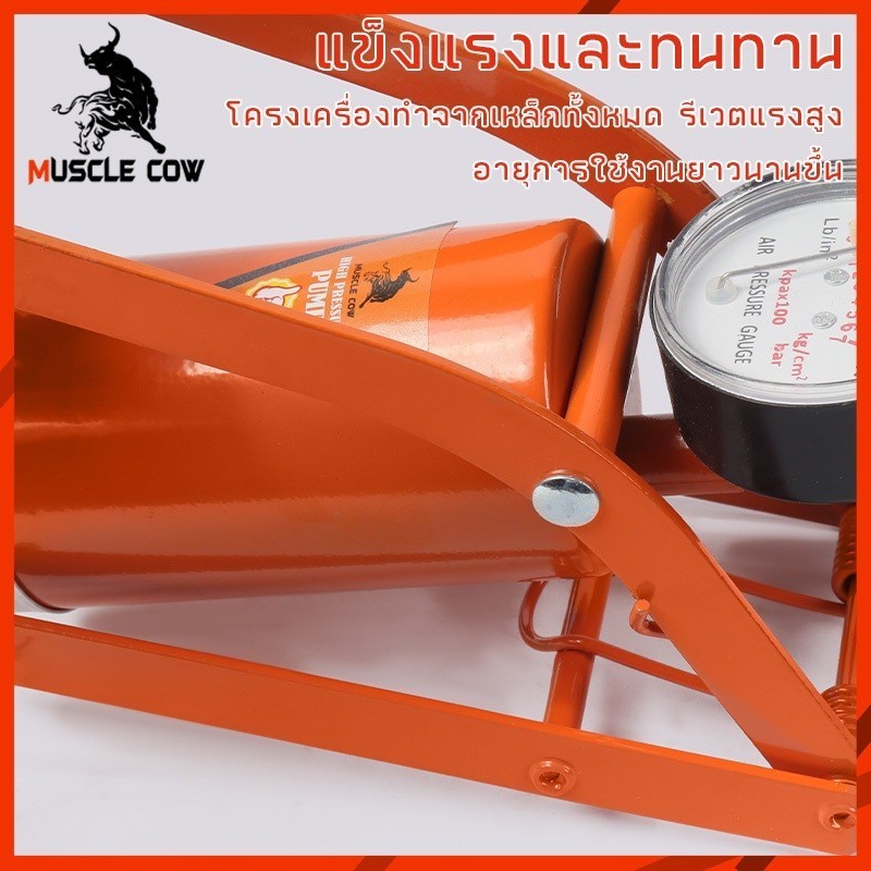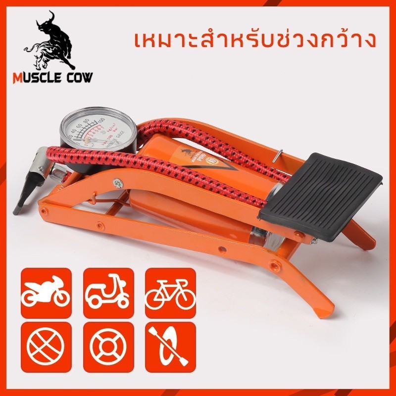 MUSCLE COW ที่สูบลมแบบเท้า แข็งแรง ทนทาน พร้อมหัวเติมหลายแบบ เติมลมได้ทั้งรถและลูกบอล