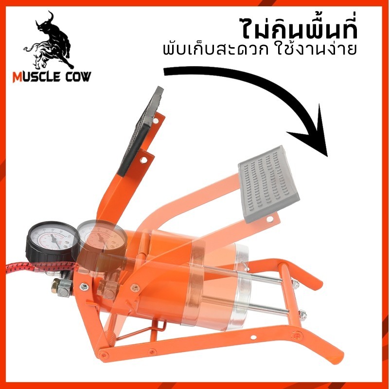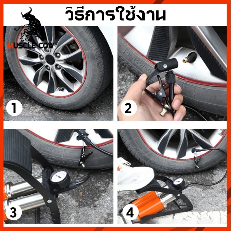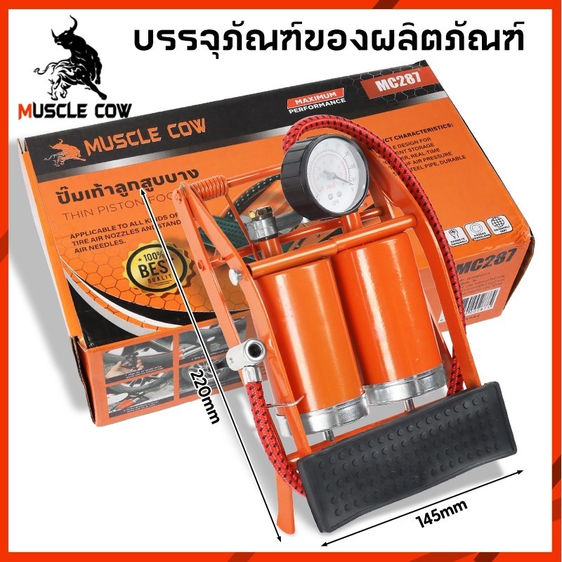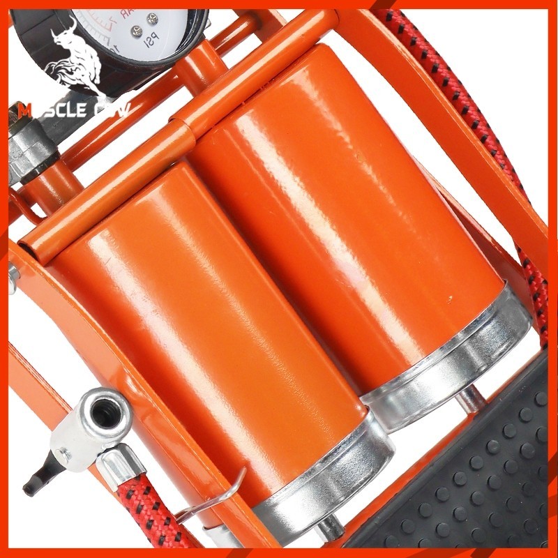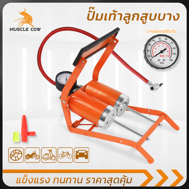 MUSCLE COW ปั๊มลมเท้า 2 สูบ เกจวัดแรงดันในตัว เติมลมเร็ว แข็งแรง สำหรับรถยนต์ มอเตอร์ไซค์ จักรยาน