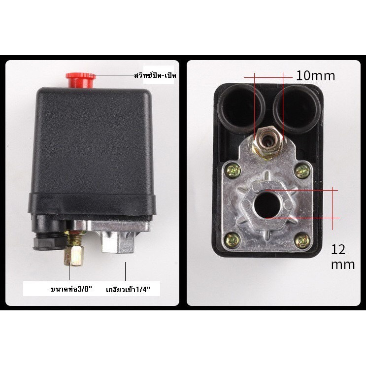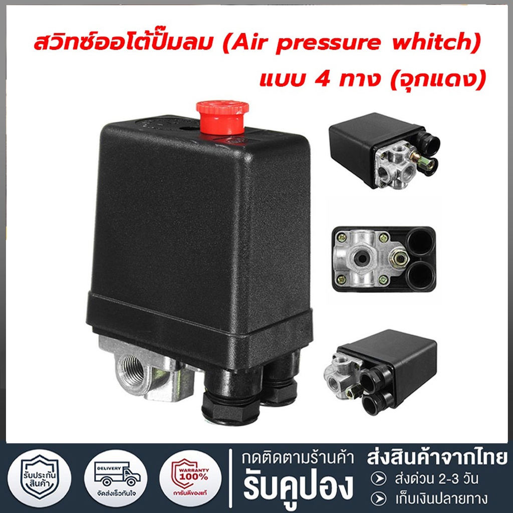 TH-Livingสวิทควบคุมแรงดันลม 1/4นิ้ว 220V 90-120 PSI สำหรับปั๊มลม 1ทางและ4ทาง ใช้กับROTARY/OIL FREE ตัดไฟอัตโนมัติ