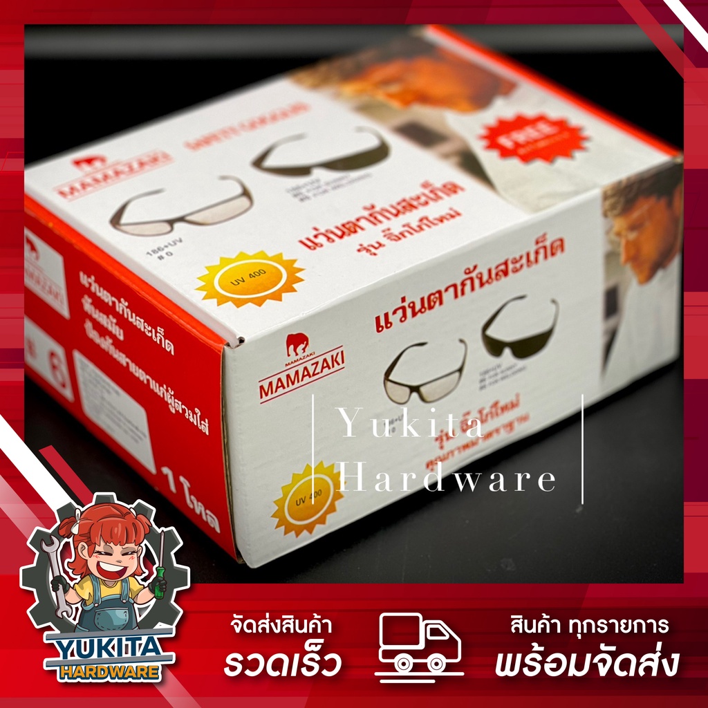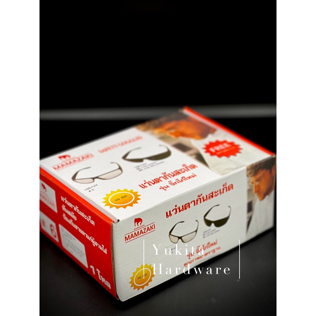 (ยกกล่อง 12 ชิ้น) MAMAZAKI แว่นตา นิรภัย เซฟตี้ กันสะเก็ด 3 สี สีใส สีดำน้อย และสีดำมาก
